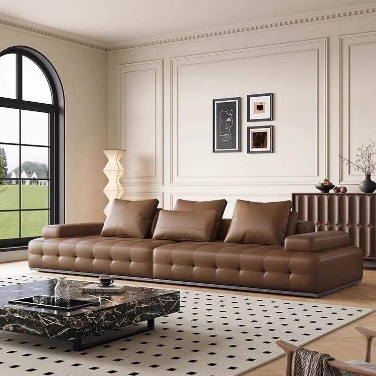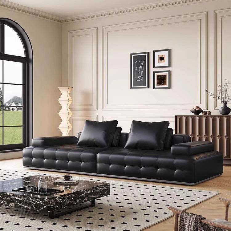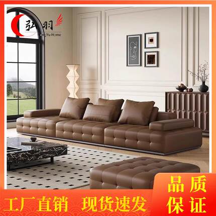 劳伦斯直排真皮沙发意式极简客厅别墅大户型大平层设计师皮艺沙发