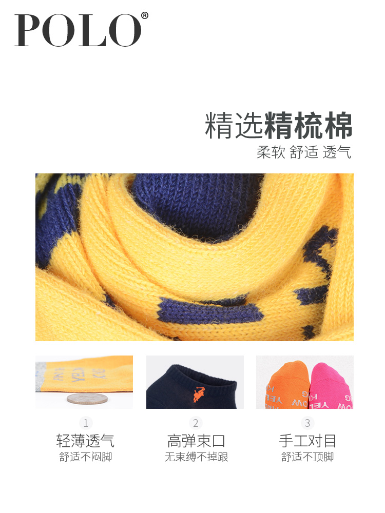 Polo男袜子夏季薄款潮男士运动袜男袜子浅口短袜船袜棉袜四季6189