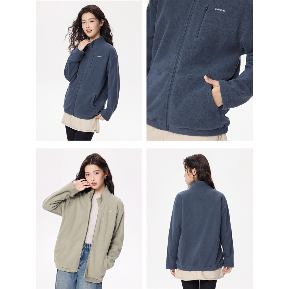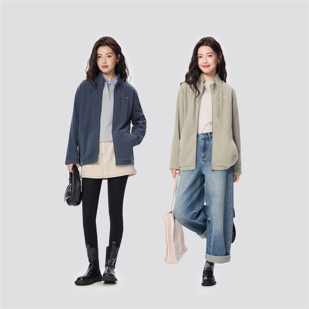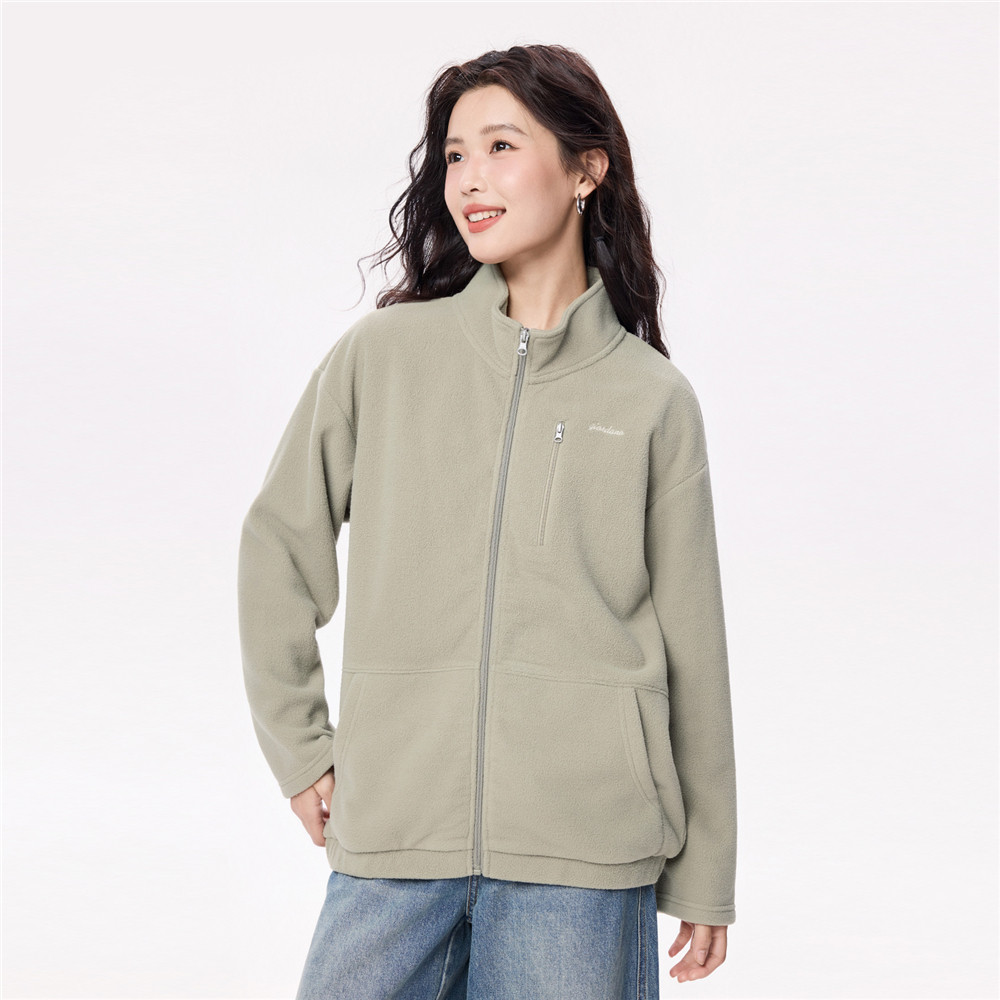佐丹奴休闲外套女装秋冬新款摇粒绒刺绣宽松立领拉链夹克05375867