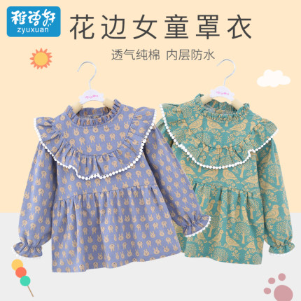 宝宝罩衣儿童围兜纯棉防水吃饭衣女童饭兜反穿衣公主围裙春秋长袖