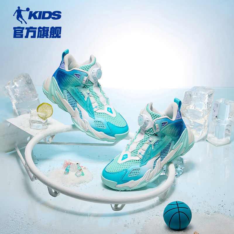 乔丹儿童篮球鞋网孔透气冬季运动鞋旋钮扣耐磨减震男童鞋缓震球鞋