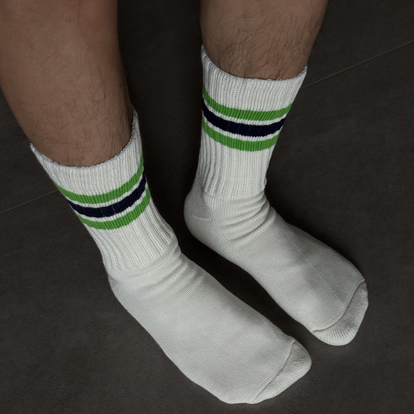 双杠条纹秋冬加厚毛巾底中筒复古运动袜松口袜子男吸汗长筒棉袜