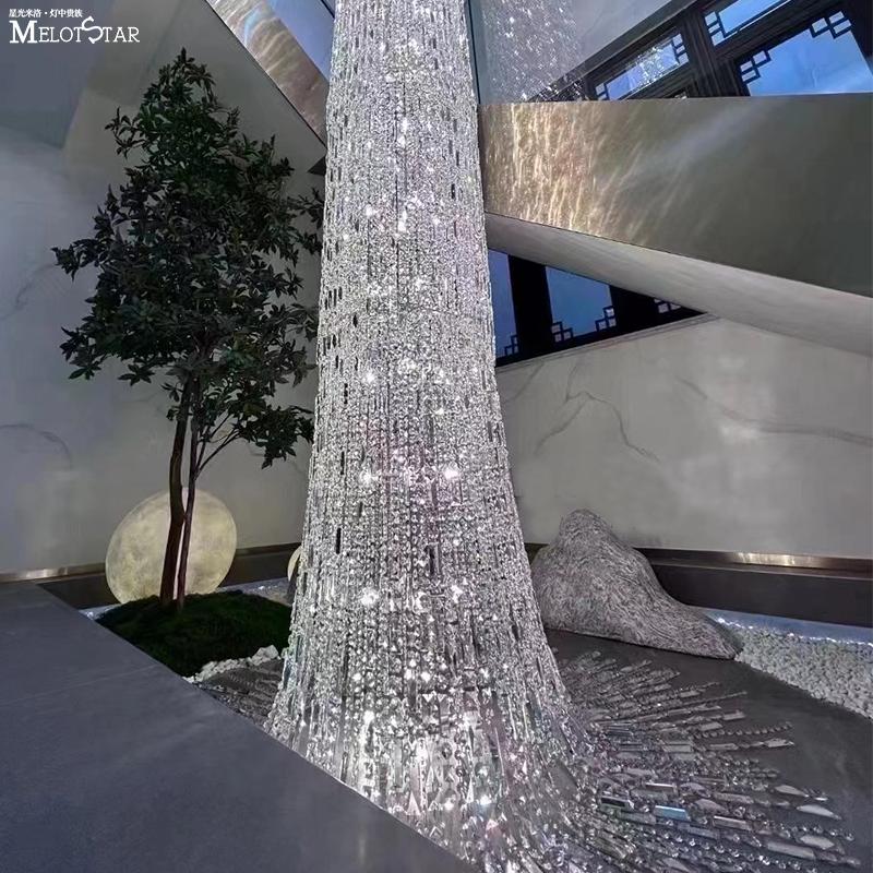 冰柱复式楼别墅旋转楼梯吊灯水晶长吊灯现代简约loft轻奢客厅灯
