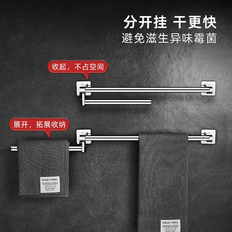 浴室旋转毛巾架不锈钢卫生间凉毛巾杆极简风浴巾架活动挂杆免打孔