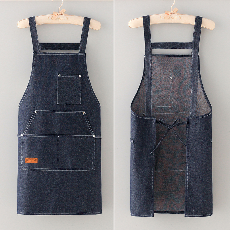 透气耐磨牛仔围裙女厨房家用围兜餐饮火锅店工作服男定制LOGO印字