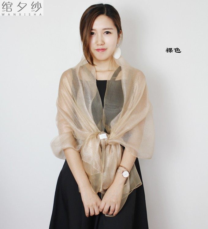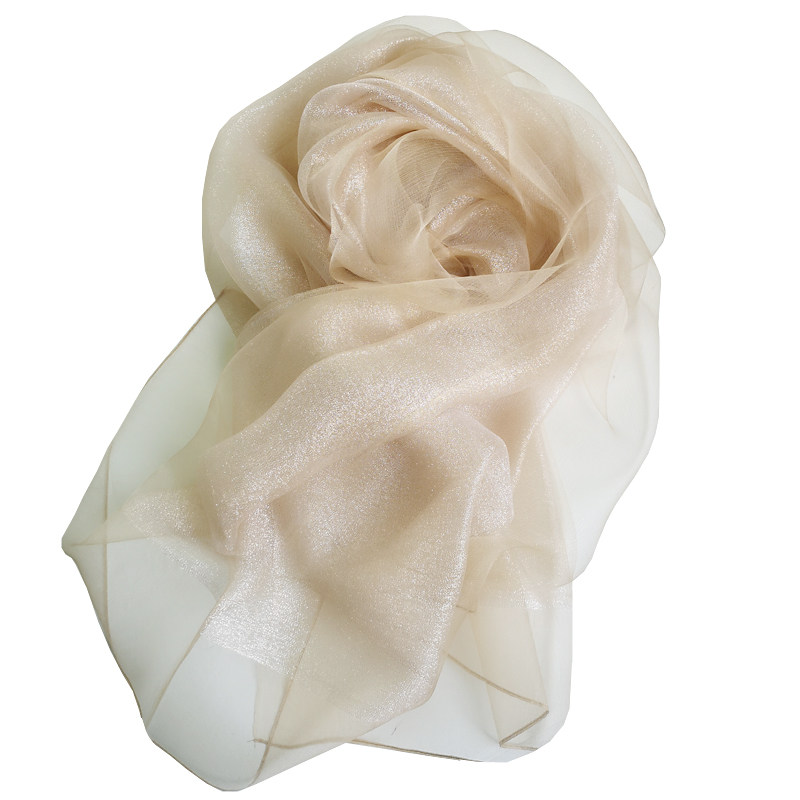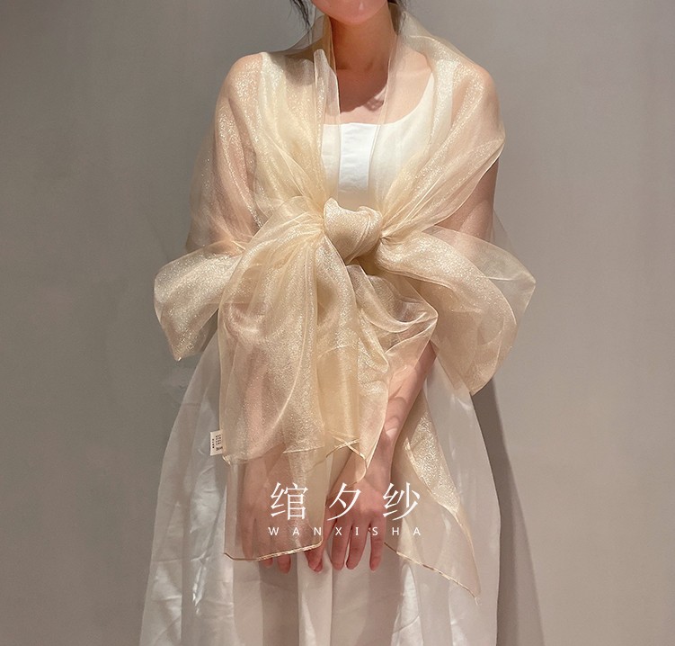 2025香槟色双层桑蚕丝围巾真丝丝巾礼服旗袍披肩婚庆长款女式秋冬