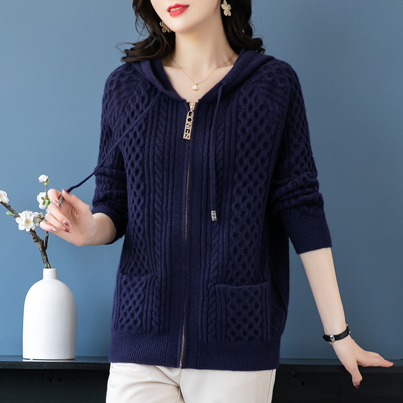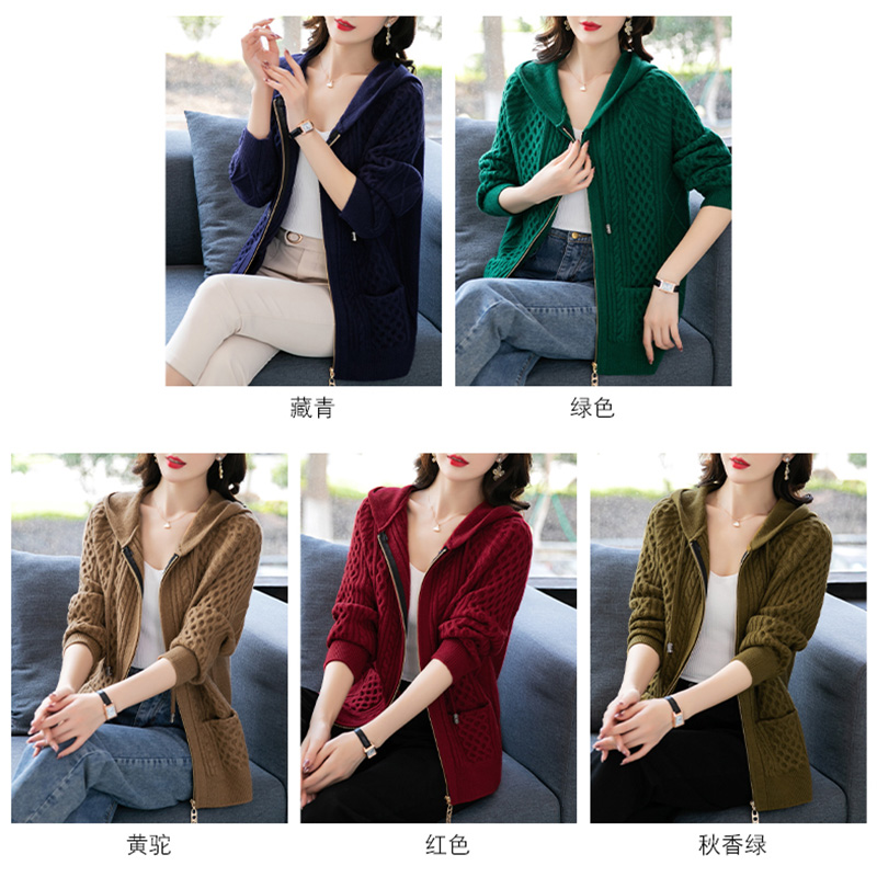 毛衣外套女开衫带帽针织衫拉链上衣春秋装短款连帽衫宽松2023新款