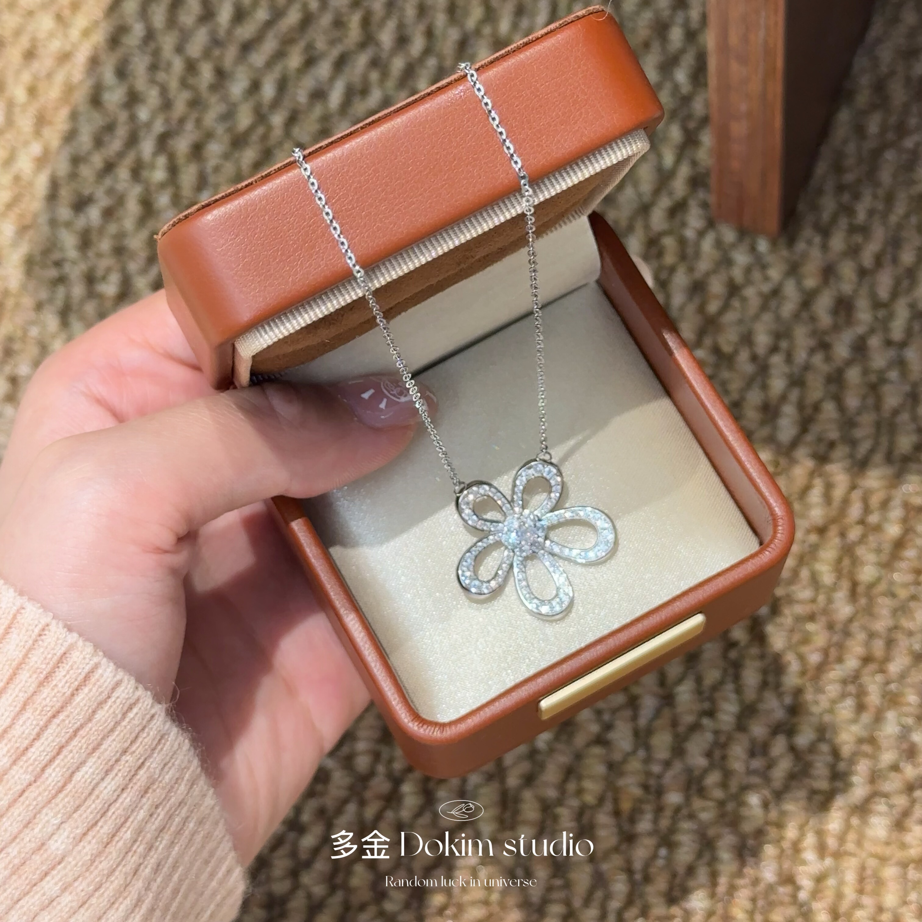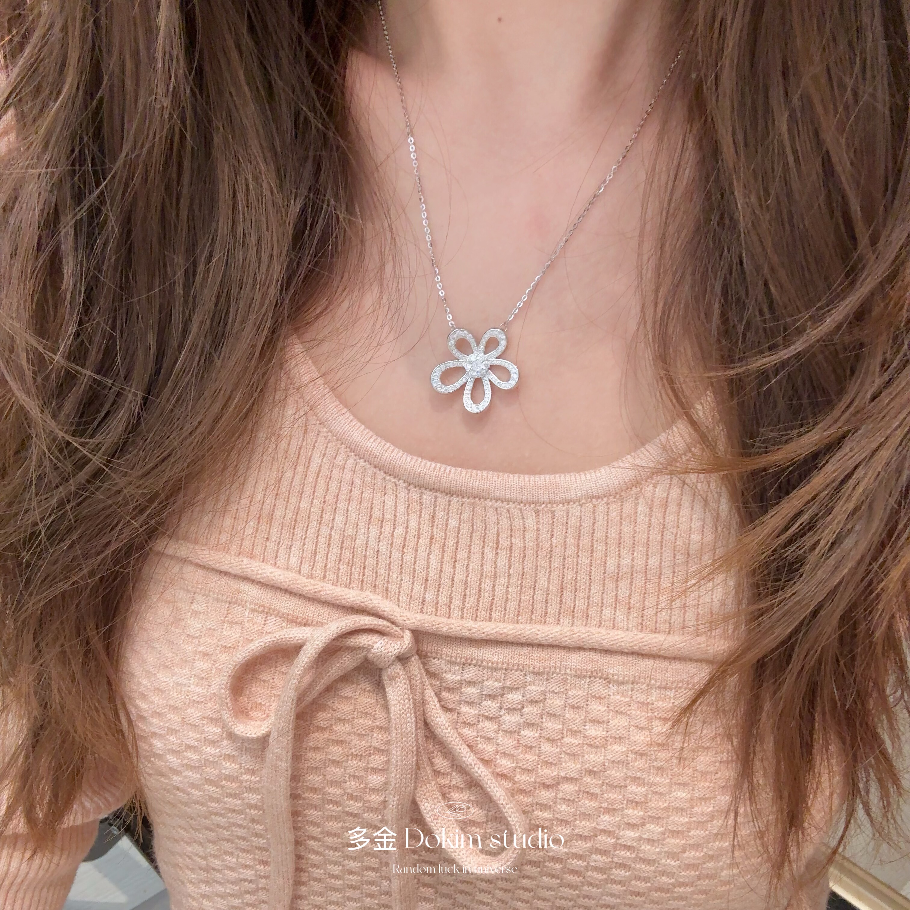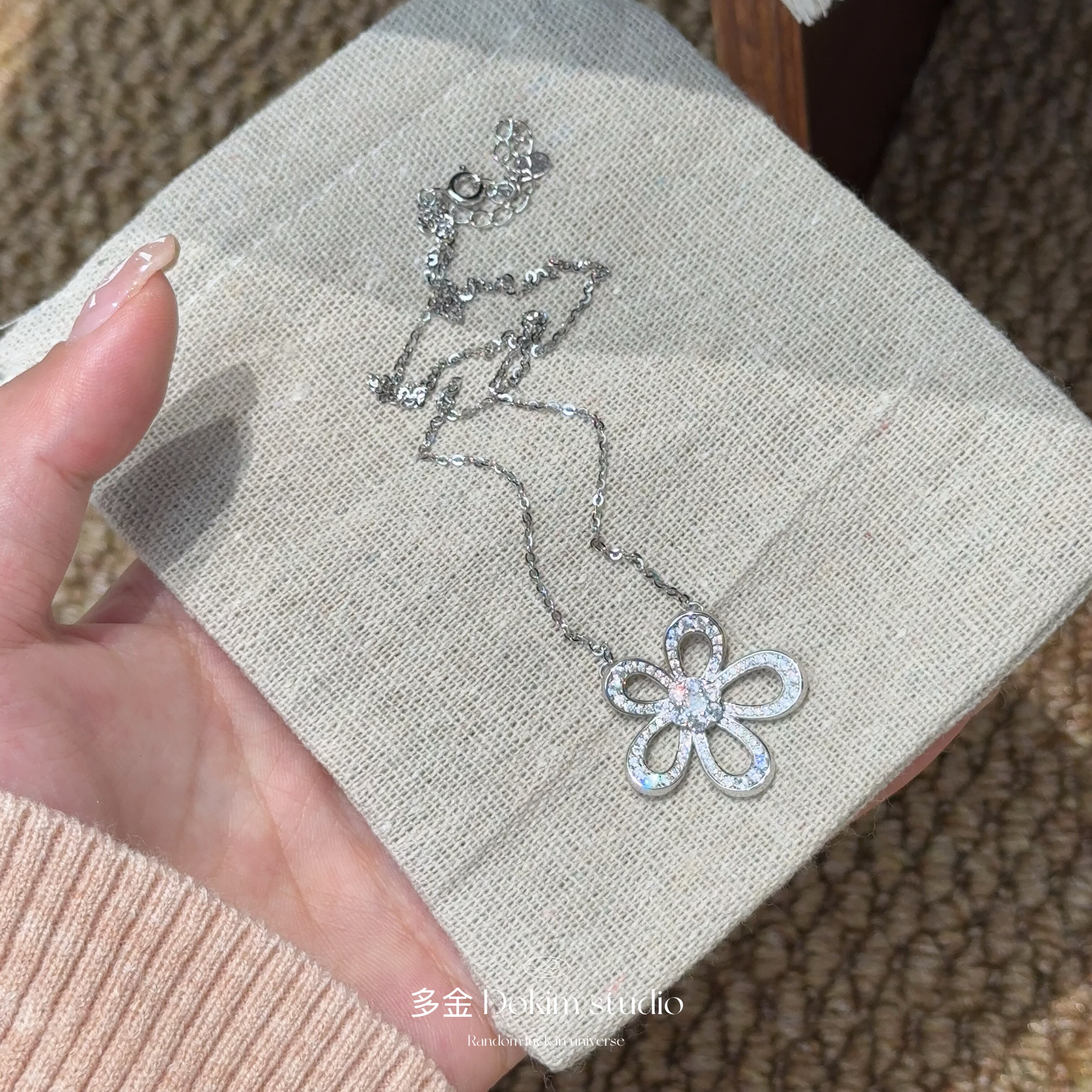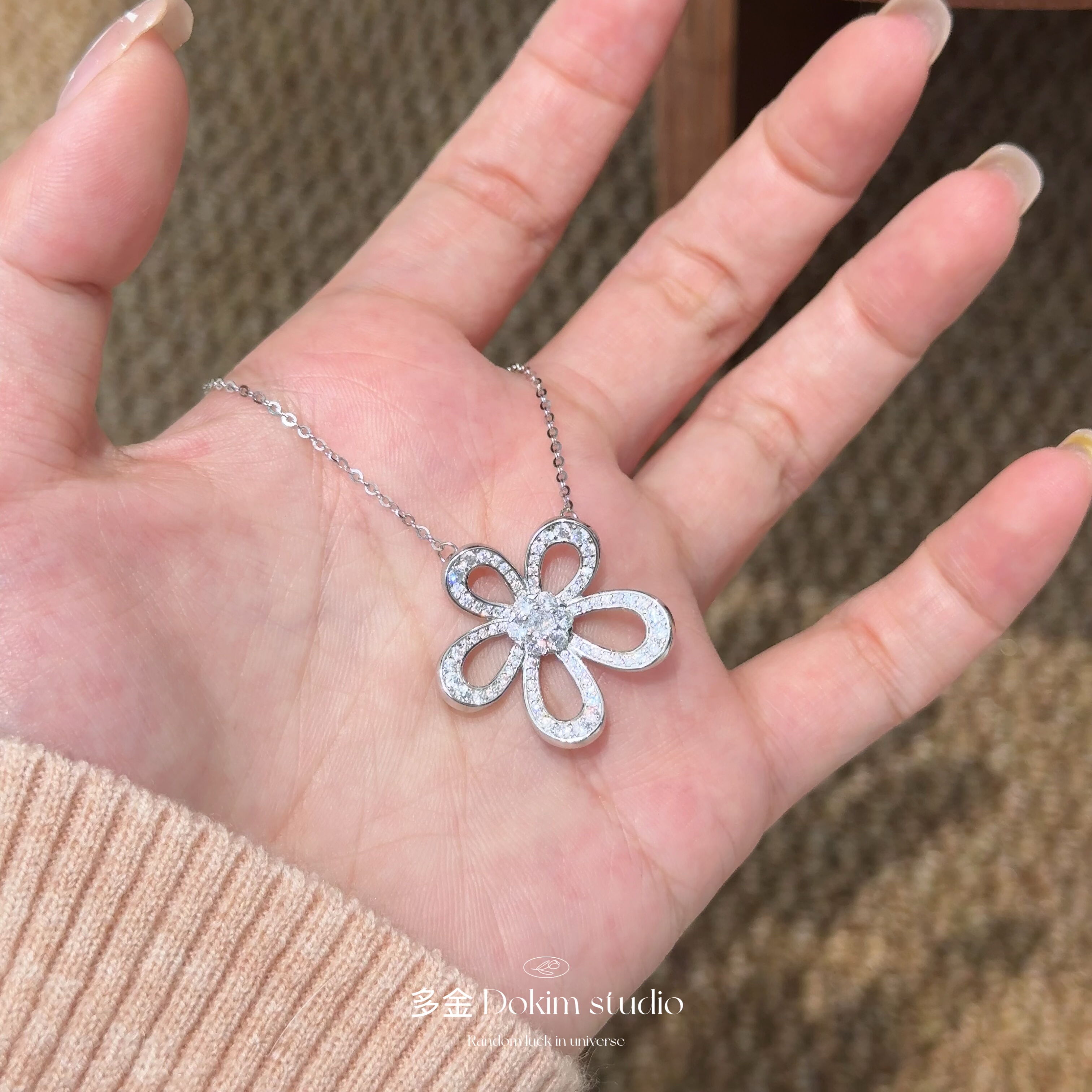 美神降临S925纯银满钻超闪山茶花项链大花百搭轻奢锁骨链送礼精致