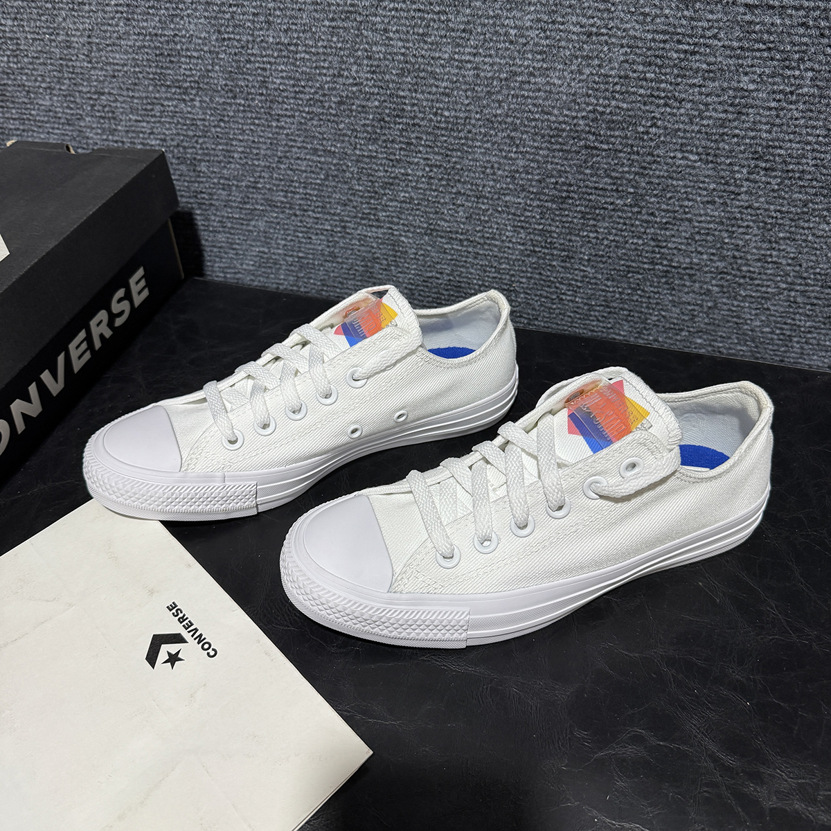 正品Converse匡威AllStar男女同款白色彩标轻便低帮帆布鞋165330C