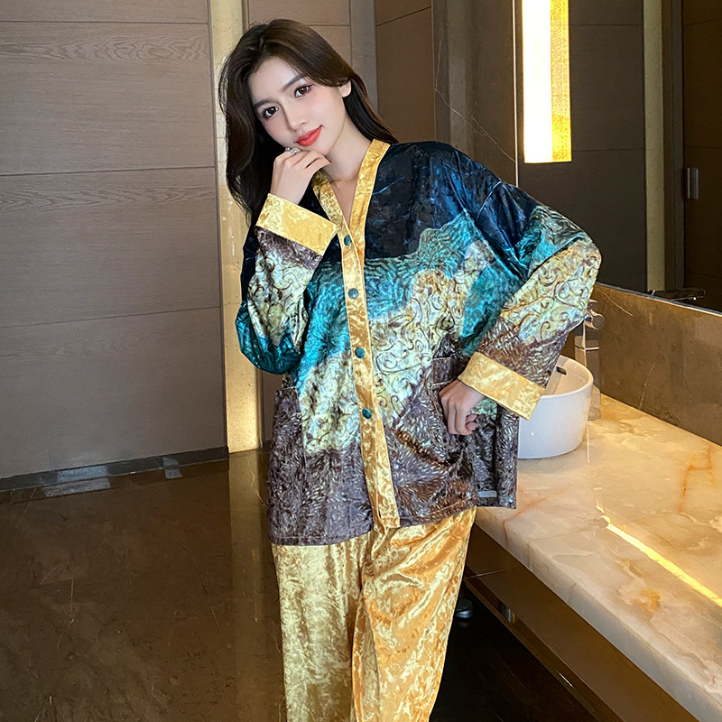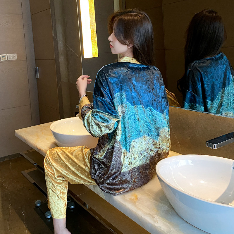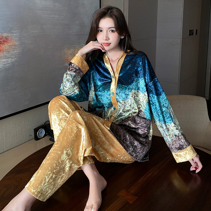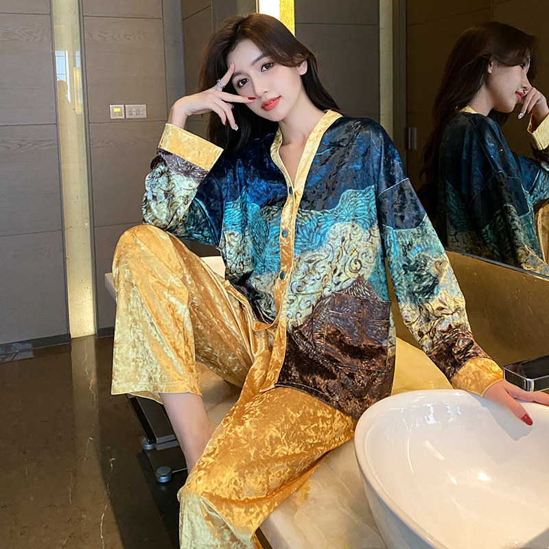 睡衣女秋冬2024新款韩版休闲长袖金丝绒家居服网红爆款可出门套装