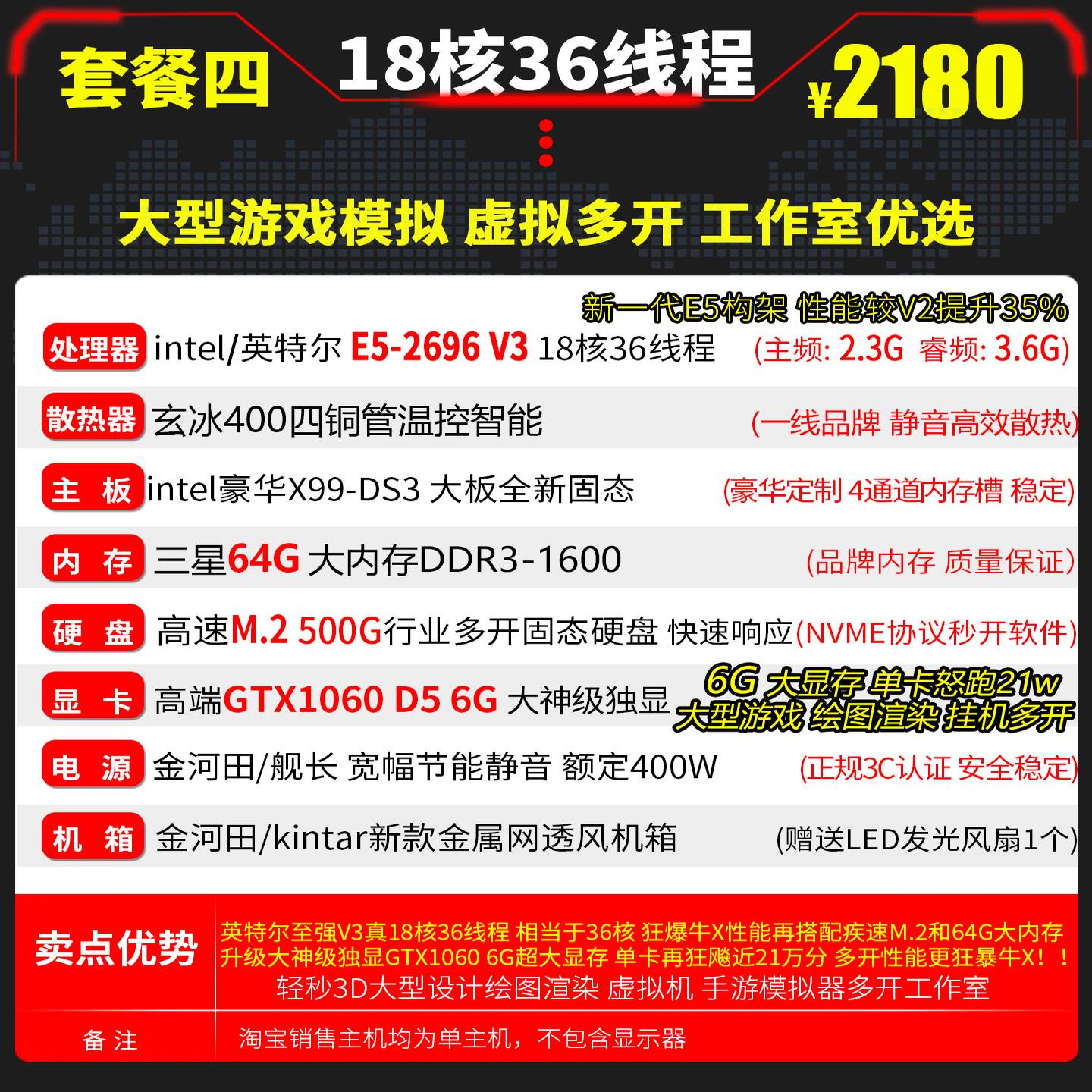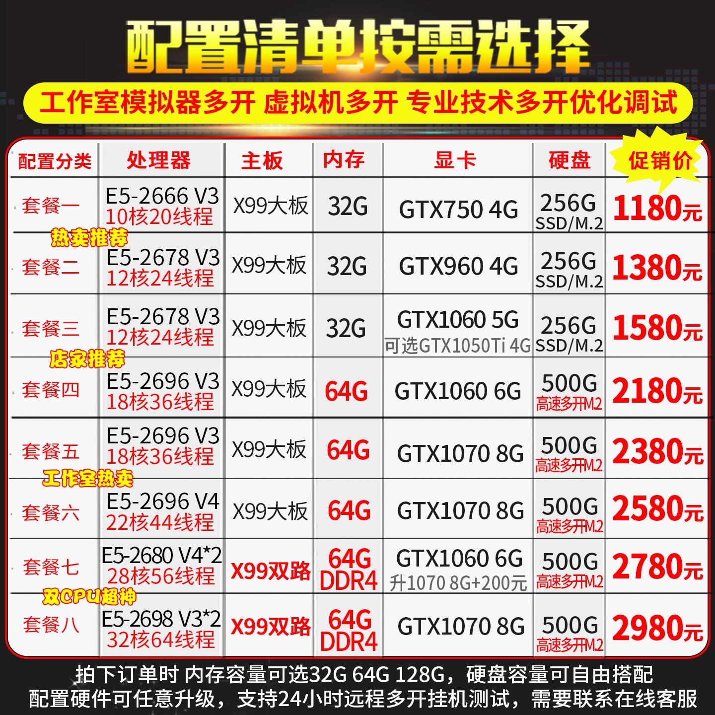 XeonE5电脑主机2696V3工作室游戏多开 手游模拟器伺服器双路组装