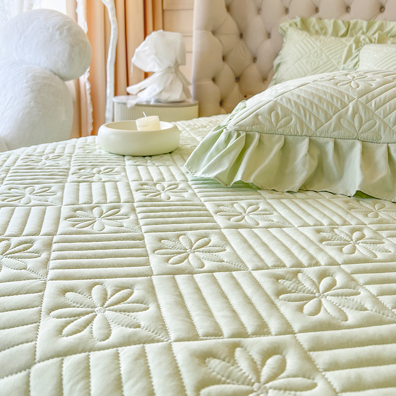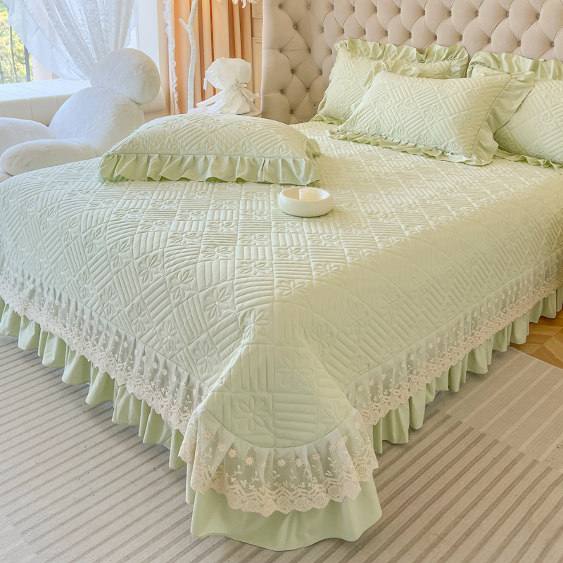 韩系水洗棉单件床盖公主风四季通用花边夹棉榻榻米床单铺盖三件套