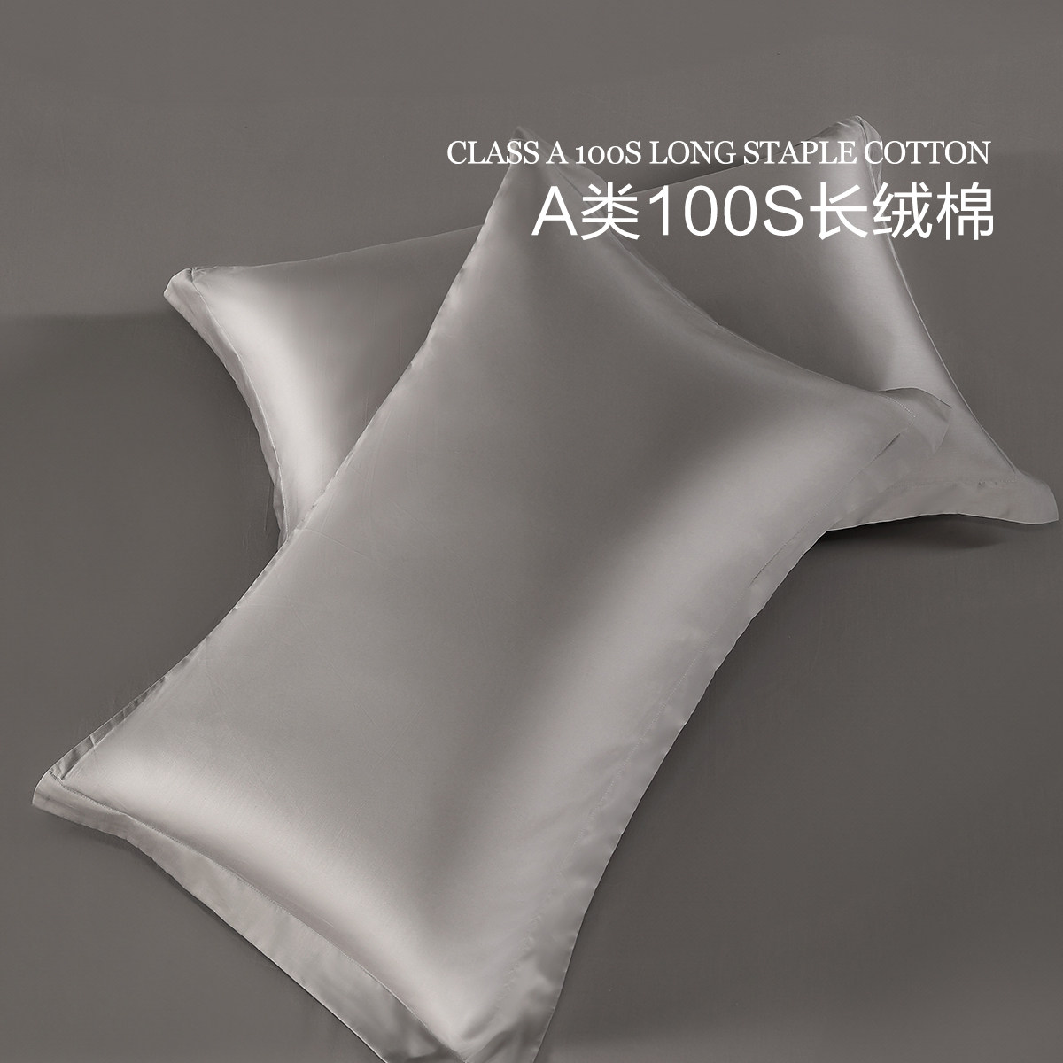 水星家纺100支双股长绒棉对枕套全棉贡缎轻奢枕头套一对装26新品
