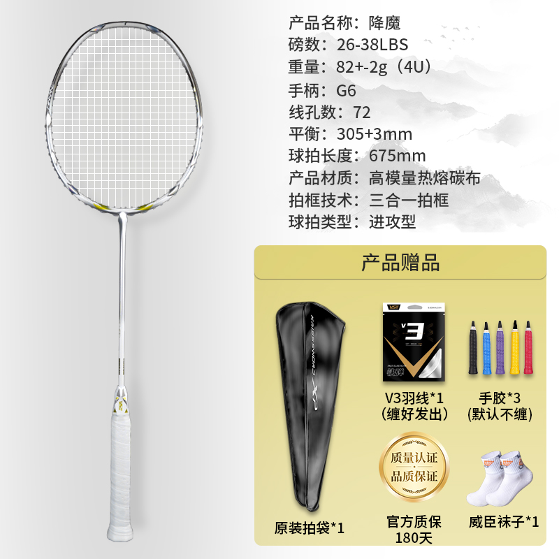 新色威臣VS降魔XP羽毛球拍全碳素进攻型耐打比赛专业高端周泽奇拍