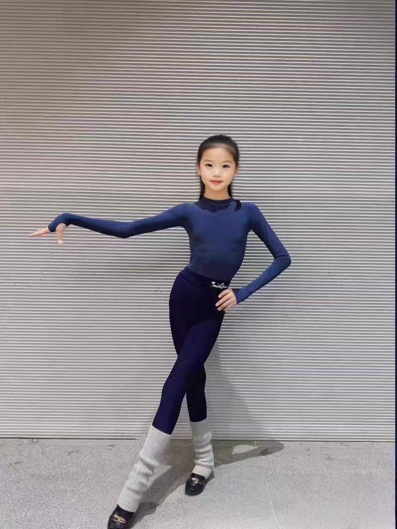 25新款拉丁舞服女童秋冬新款长袖指扣高领上衣分体瑜伽运动裤套装