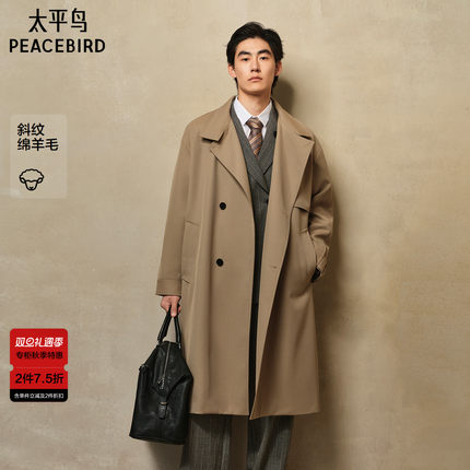 【商场同款】太平鸟男装风衣25秋季新款绵羊毛长款潮 B1BEF3423