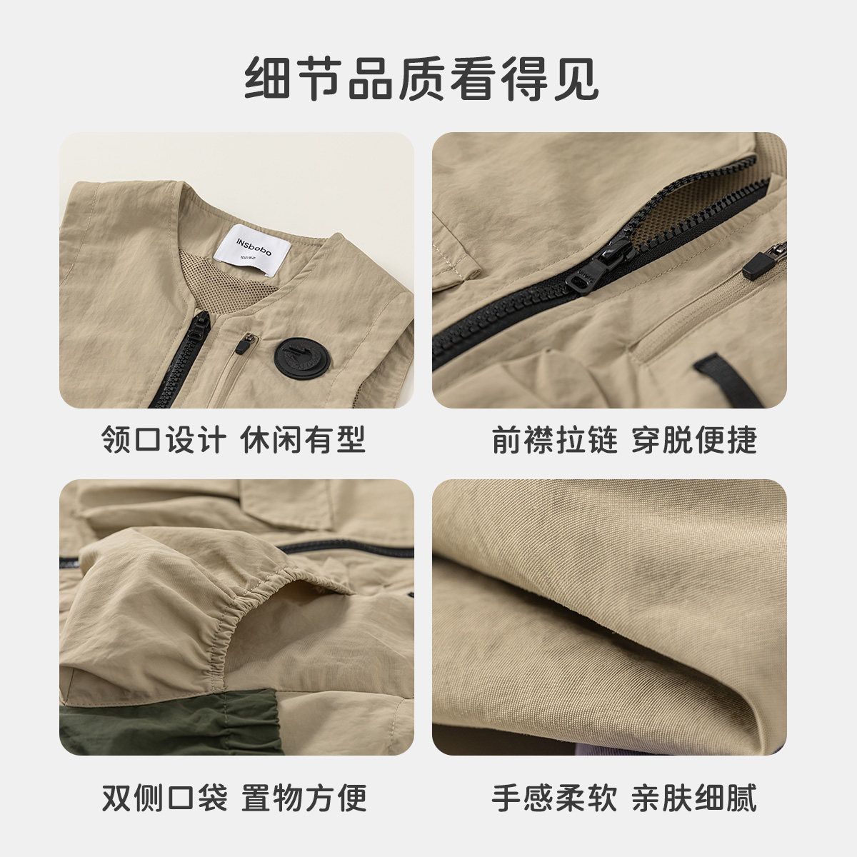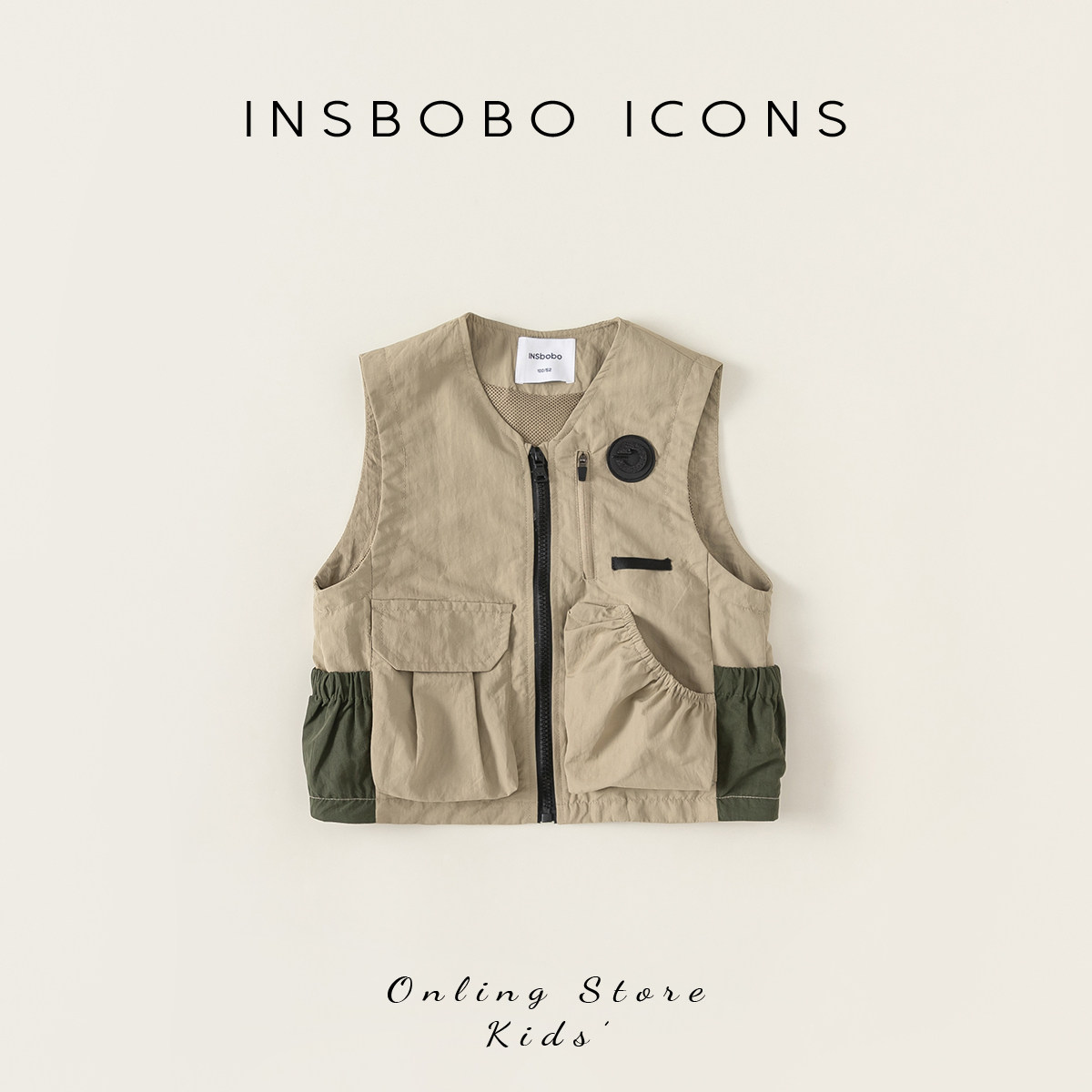 INSbobo童装2025春秋新款儿童马甲男女童无袖上衣中大童工装坎肩