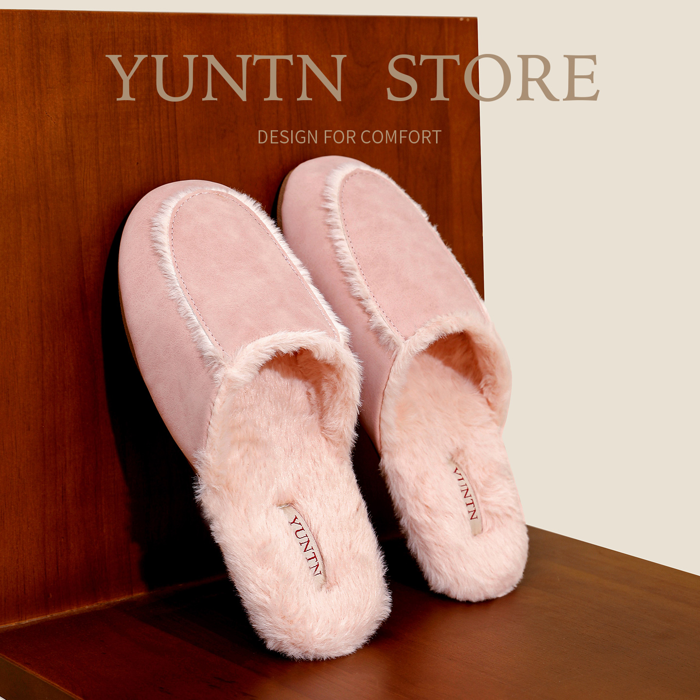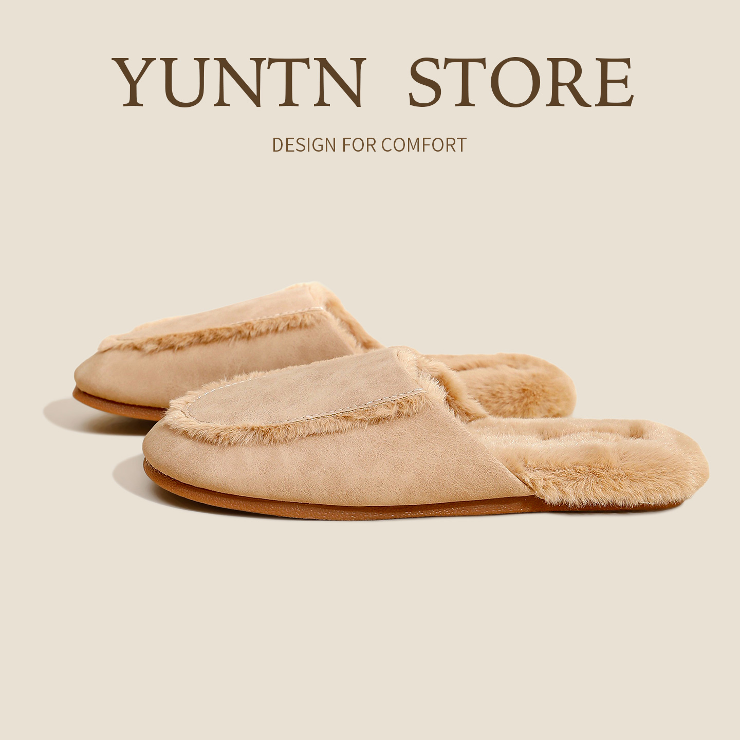 北欧风麂皮绒棉拖鞋女室内毛绒防滑牛筋底居家用拖鞋男士情侣冬季