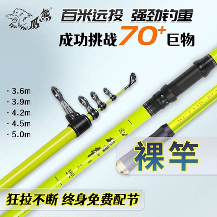 熊爪张二爹同款鲢鳙黄色远投抛竿海竿雄霸天下超硬巨物鱼竿套装