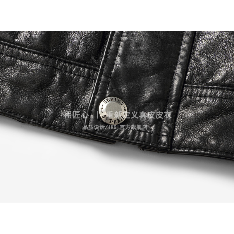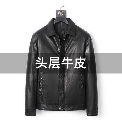 秋冬男士新款牛皮真皮皮衣男时尚潮流休闲修身牛皮夹克外套66-156