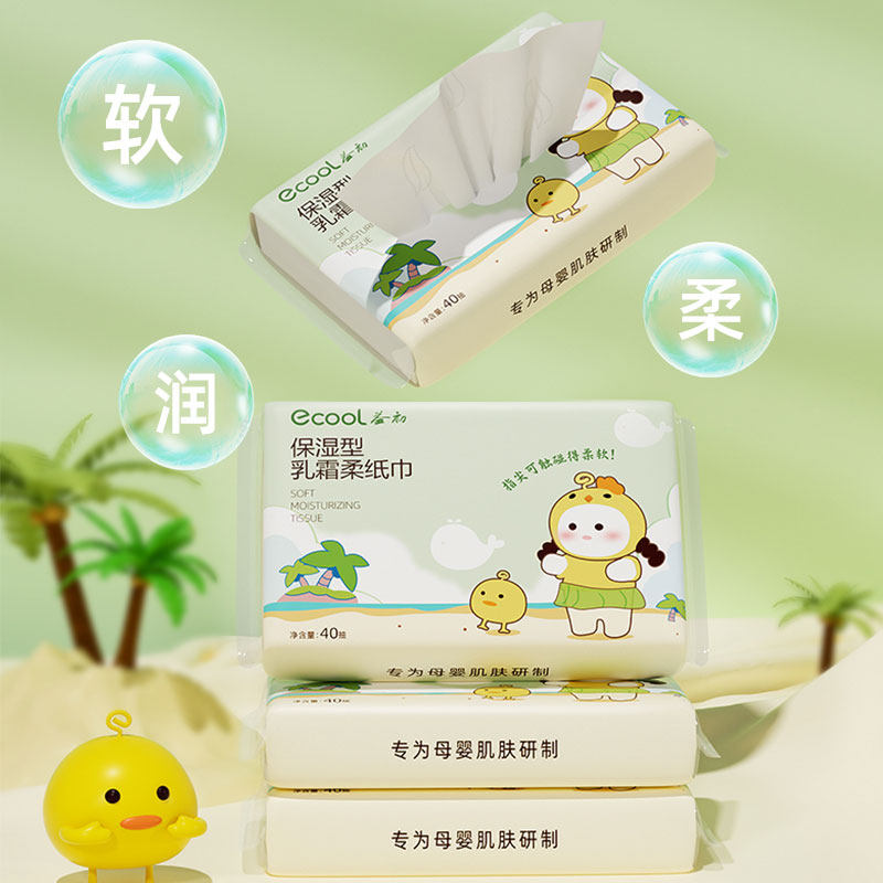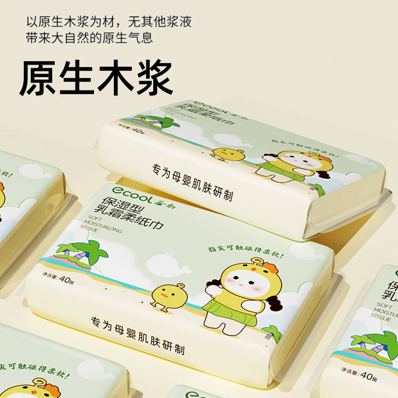 益初卡通款柔纸巾40抽15包 宝宝专用保湿纸云柔巾婴儿抽纸巾