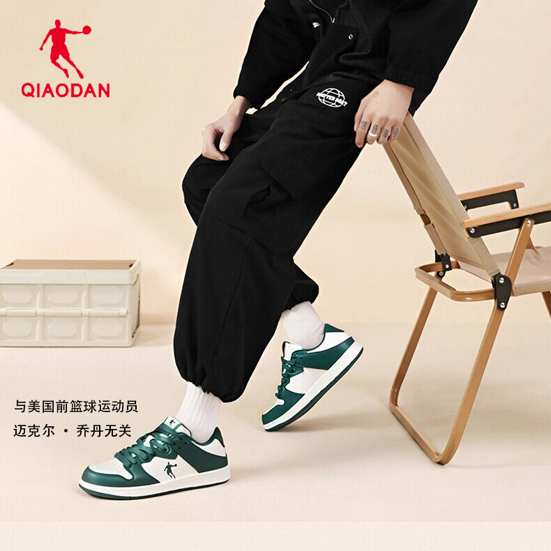 乔丹绿色透气板鞋男青少年2025新款夏季厚底休闲男鞋爆款防滑轻便