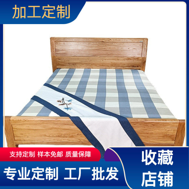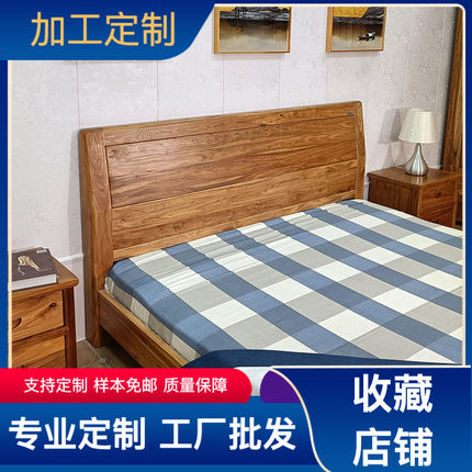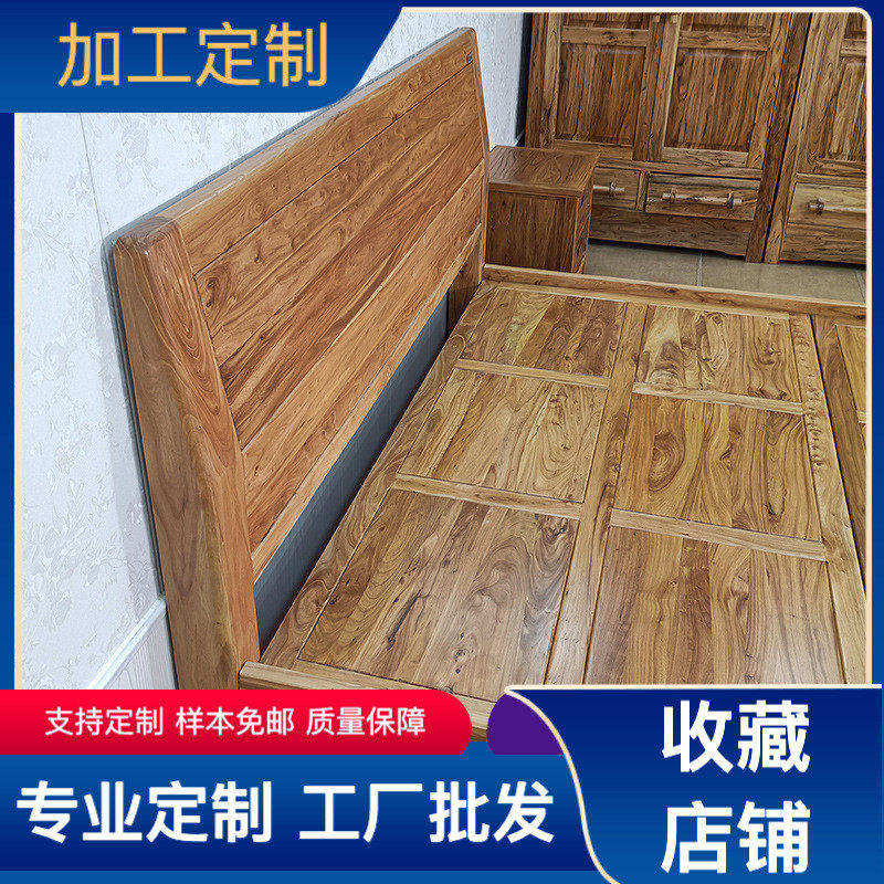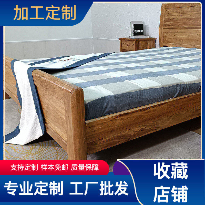 热销家用实木大床单人床原木床 卧室家具大料素面床头榆木双人床