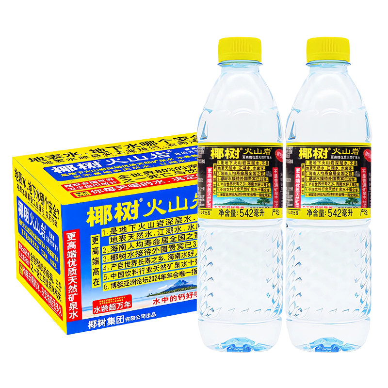 椰树火山岩天然矿泉水542ml*24瓶整箱海南产优质小瓶会议饮用水