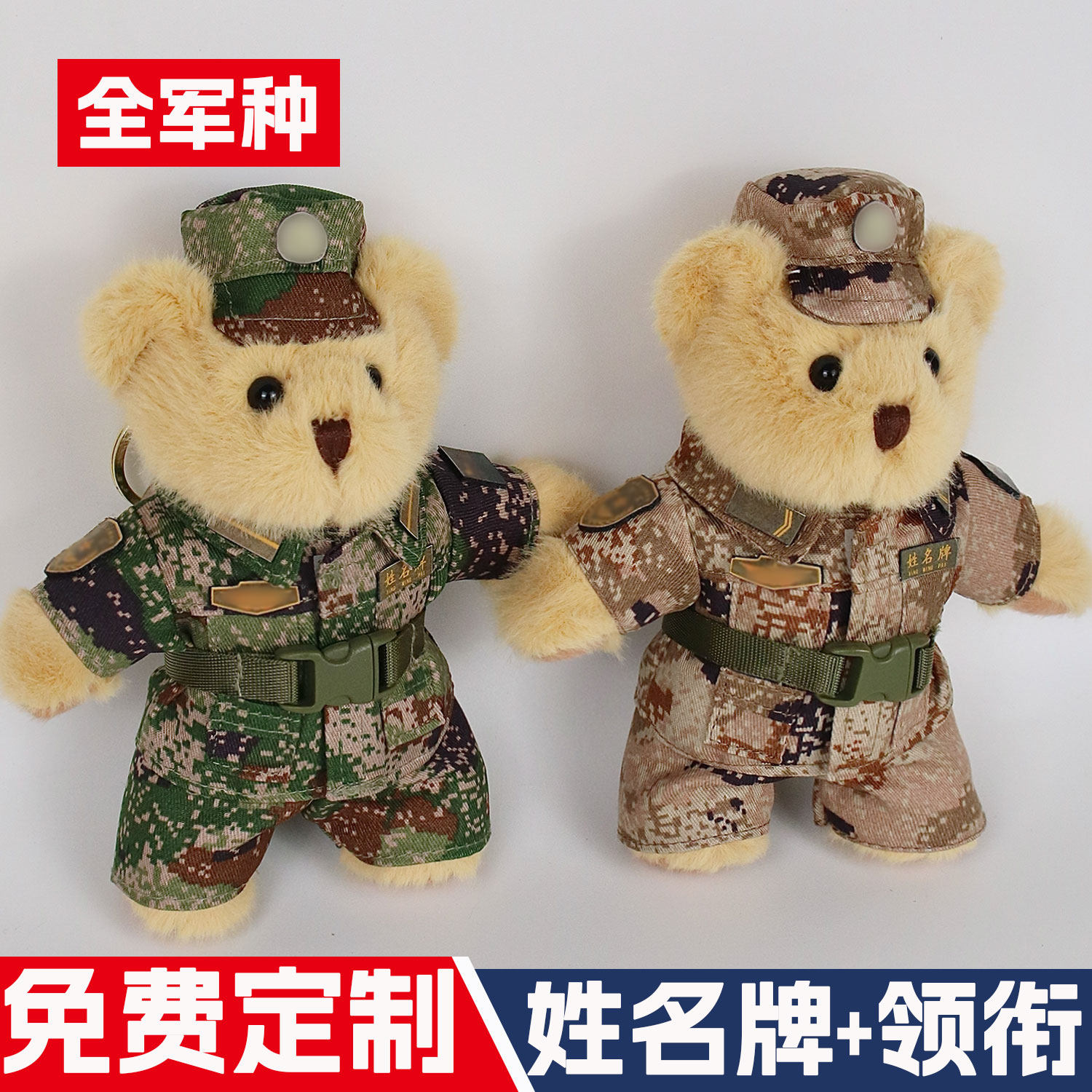 迷彩小熊毛绒玩具挂件兵哥公仔军人小熊玩偶解放军钥匙扣礼物包挂