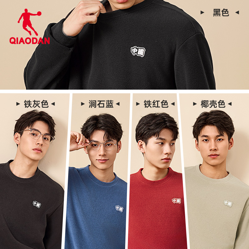 中国乔丹运动卫衣男2025冬季新款男士正品宽松休闲暖绒保暖套头衫