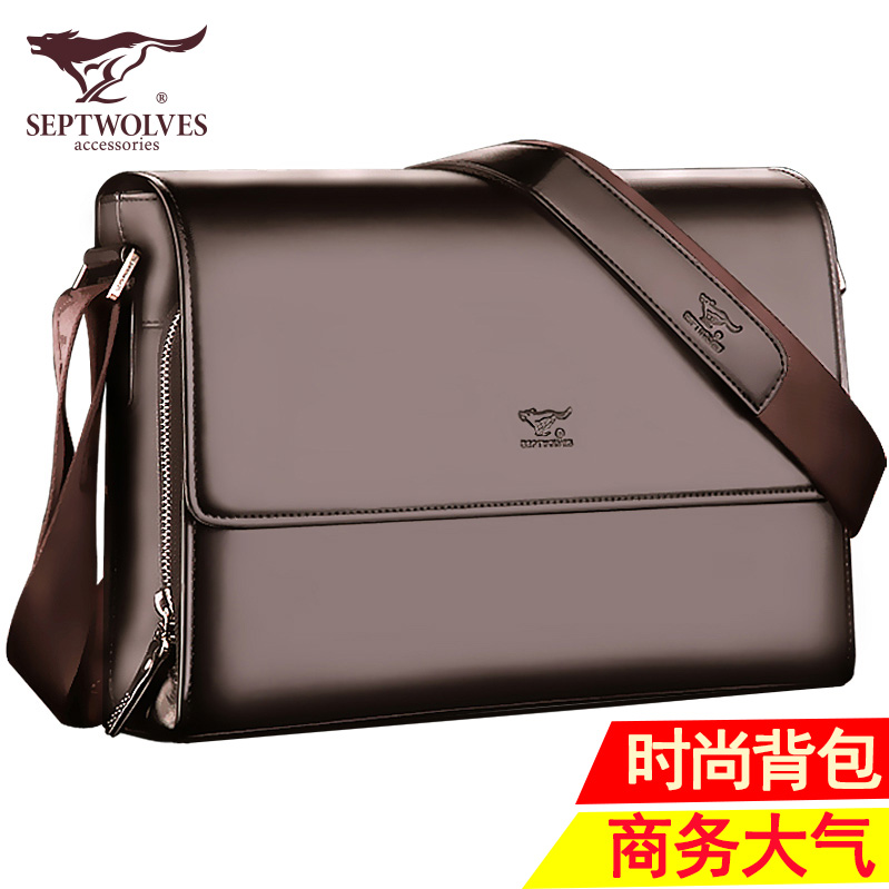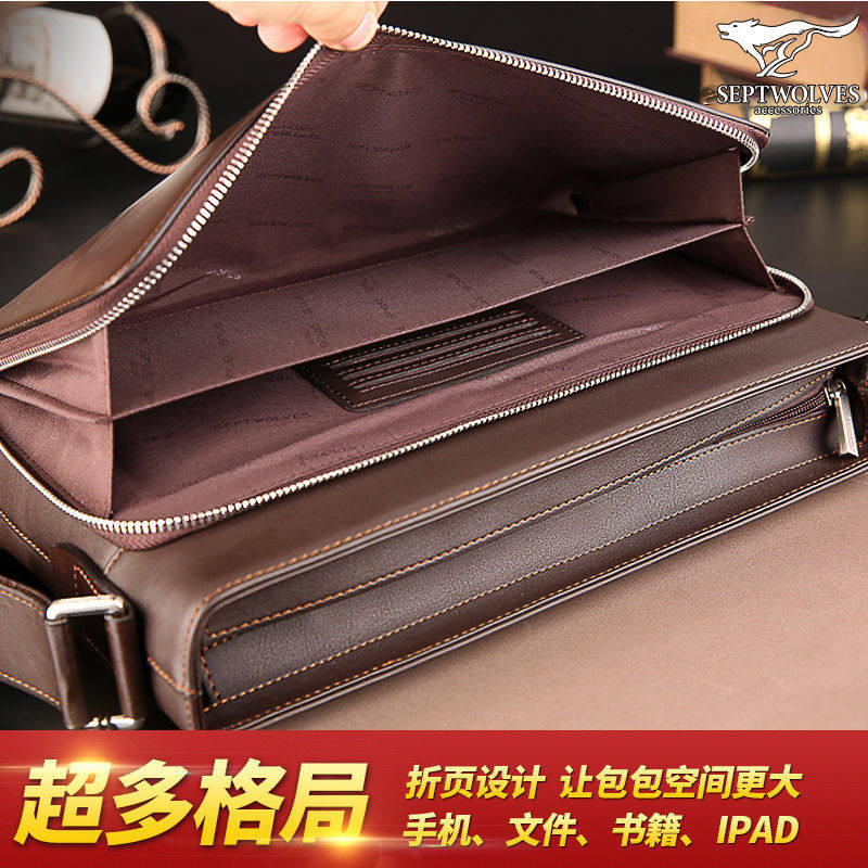 七匹狼单肩包男真皮正品横款斜挎包商务休闲大容量公文包男士背包