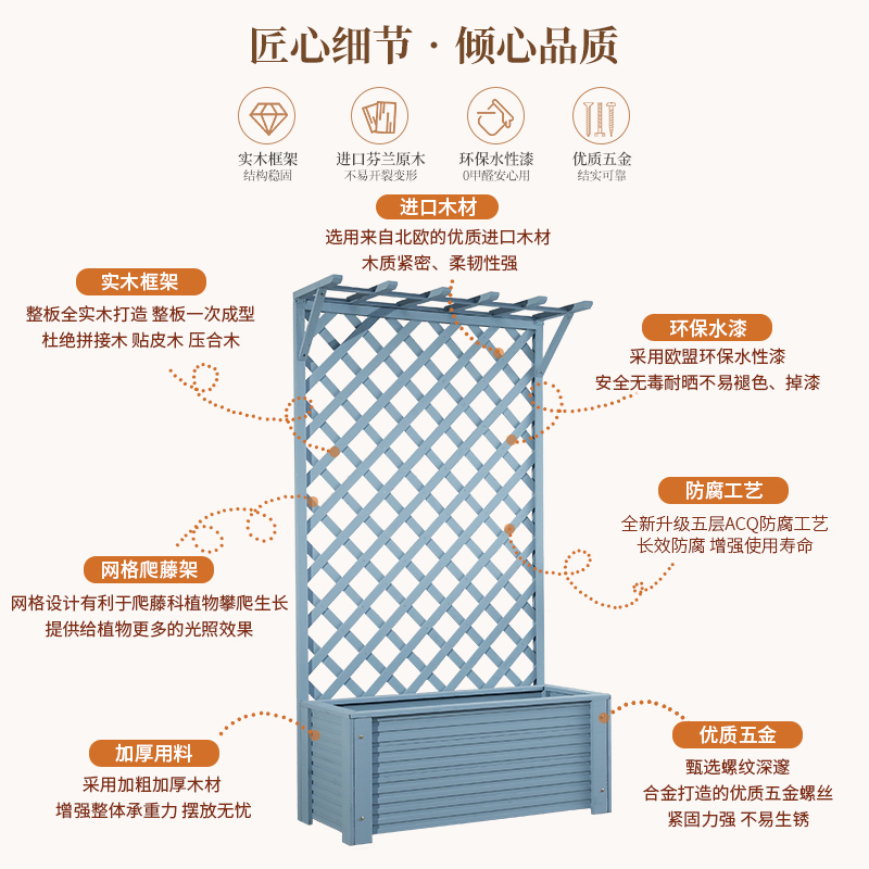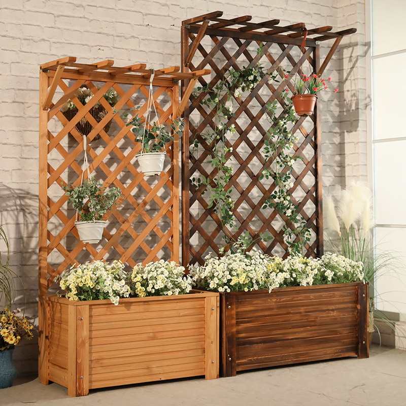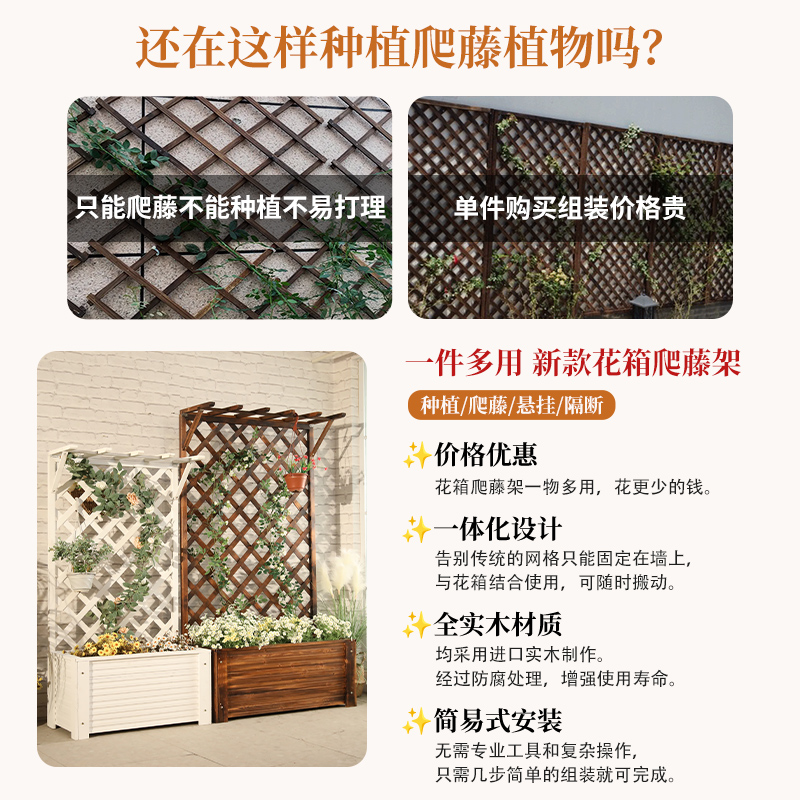 户外防腐木花箱栅栏花园爬藤架庭院实木网格花架室外阳台围栏隔断