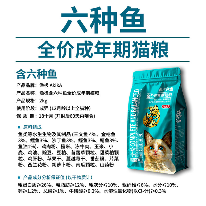 渔极六种鱼猫粮成猫专用三文鱼金枪鱼牛磺酸营养宠物全价粮