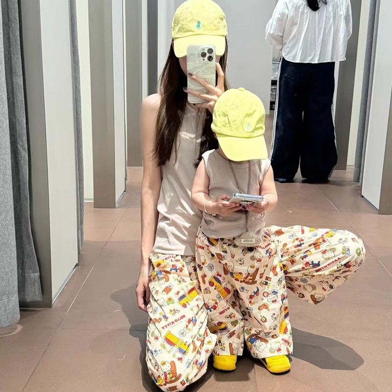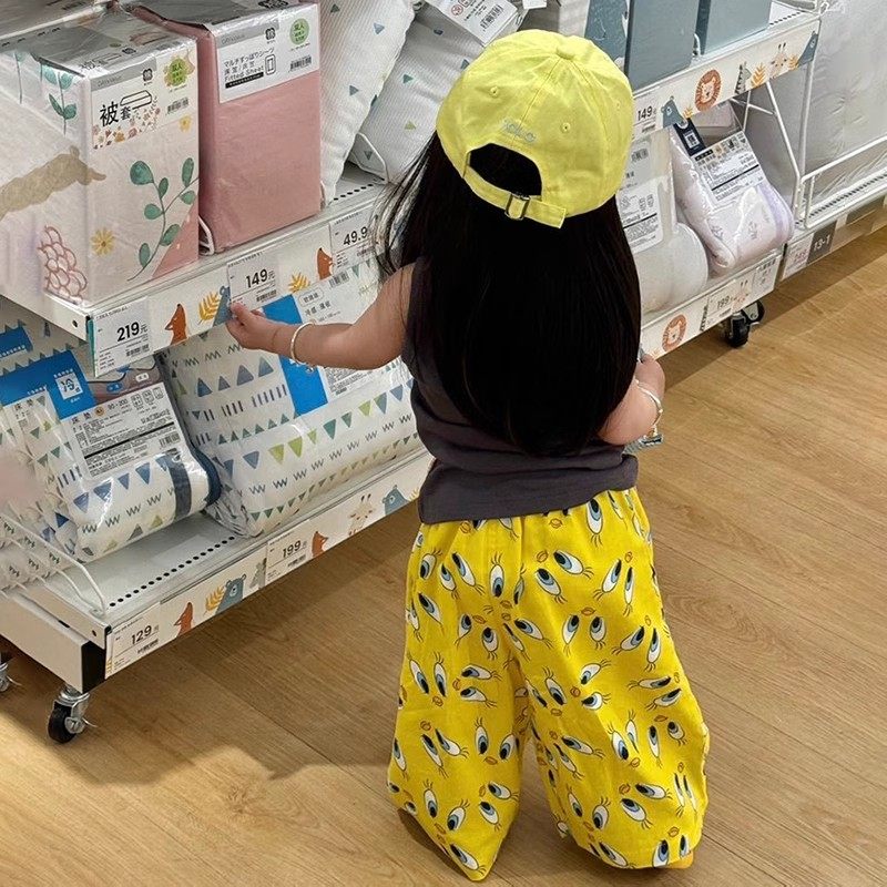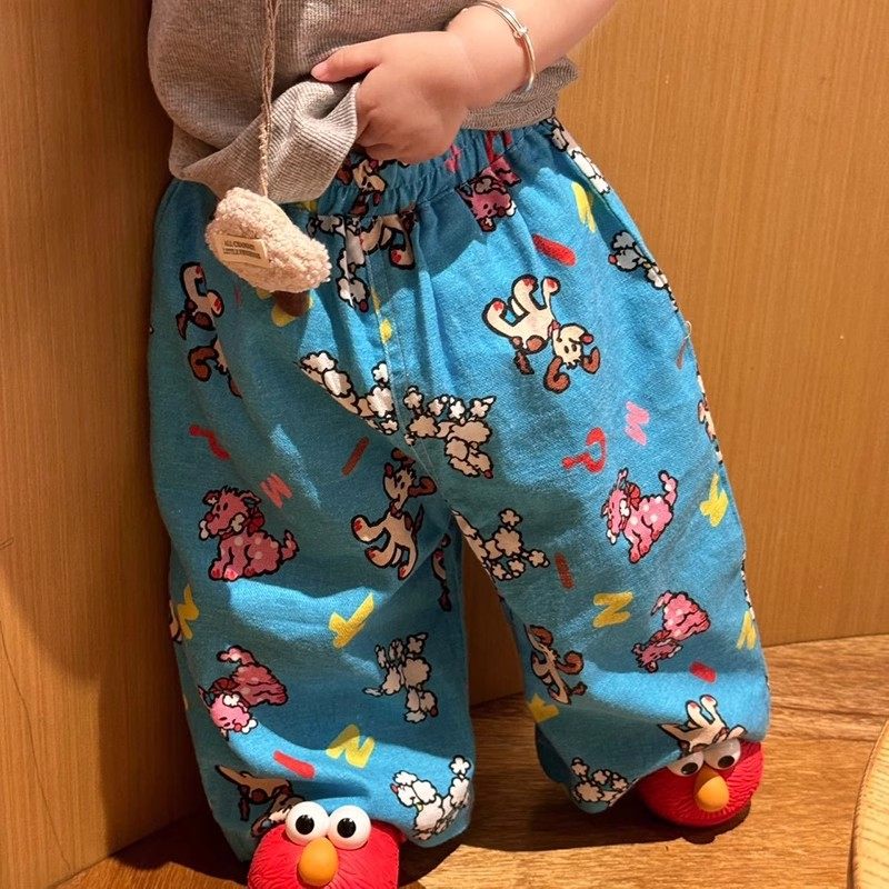多图~夏季薄款男童女童洋气可爱满印宽松阔腿裤宝宝休闲防蚊裤子