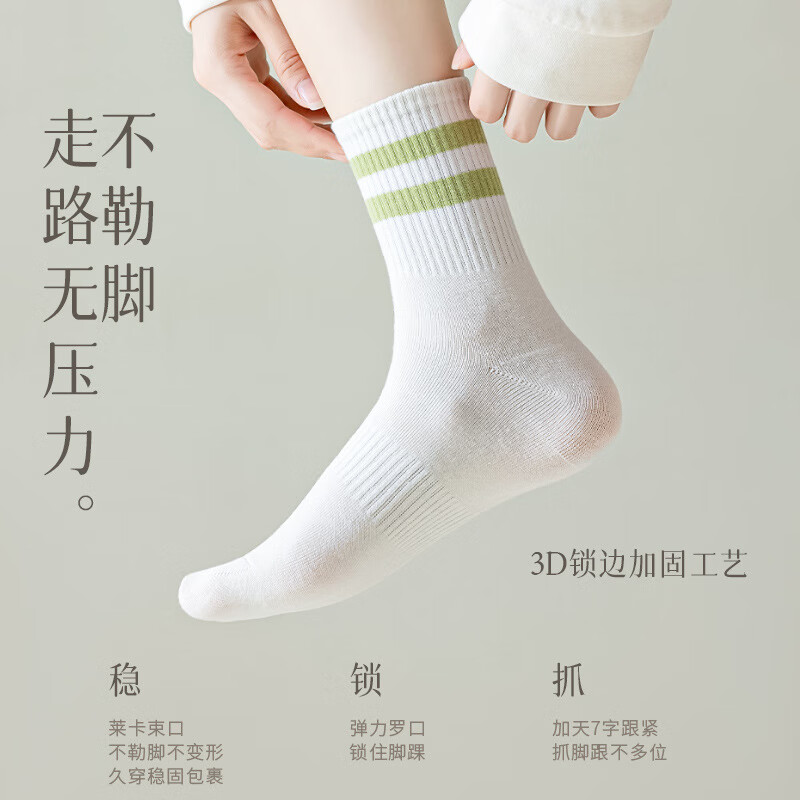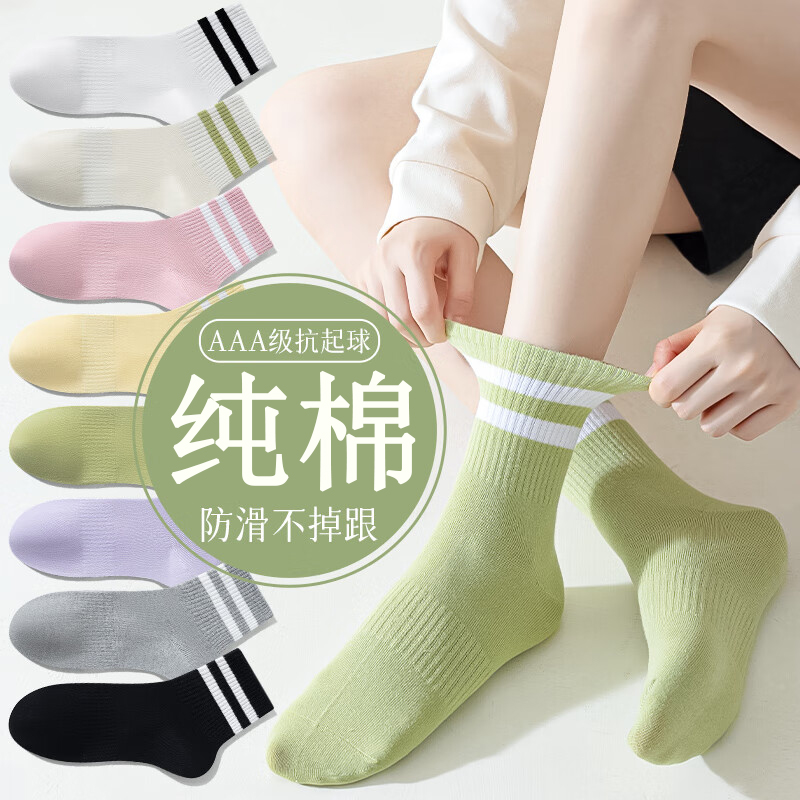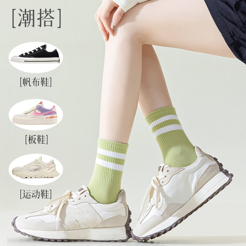尤雅丽袜子女士双杠中筒袜100%纯棉春秋款百搭运动袜袜学生袜子女