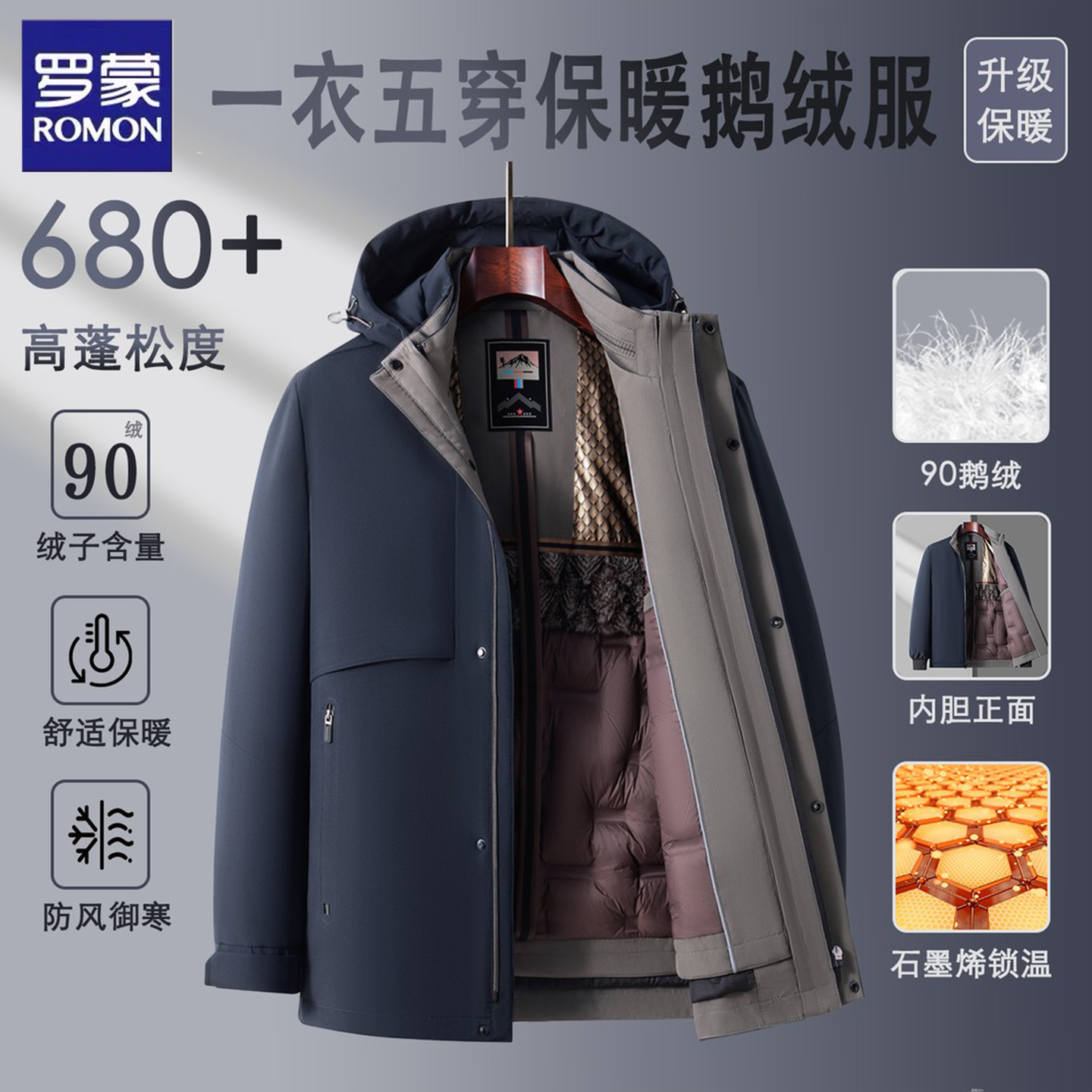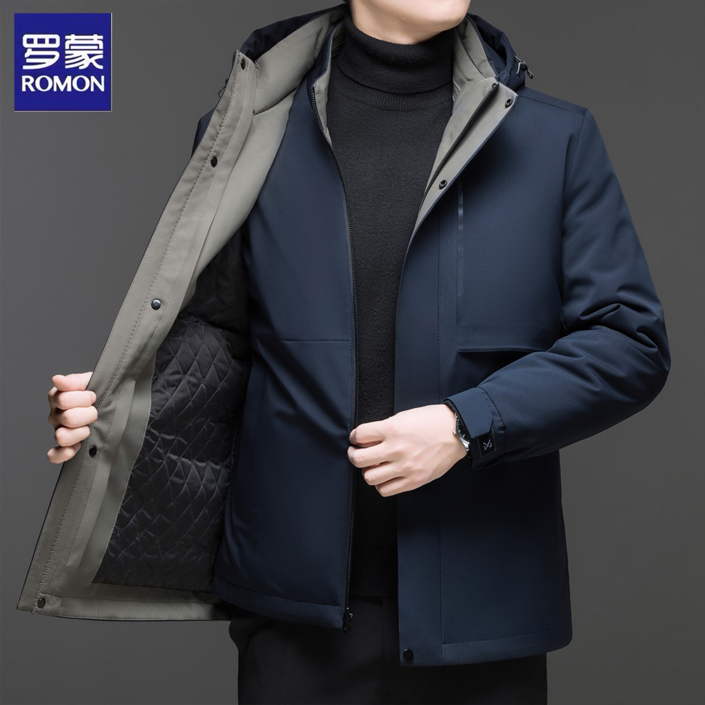 罗蒙90鹅绒服男士加厚冬季新款可拆卸内胆商务休闲防风保暖羽绒服