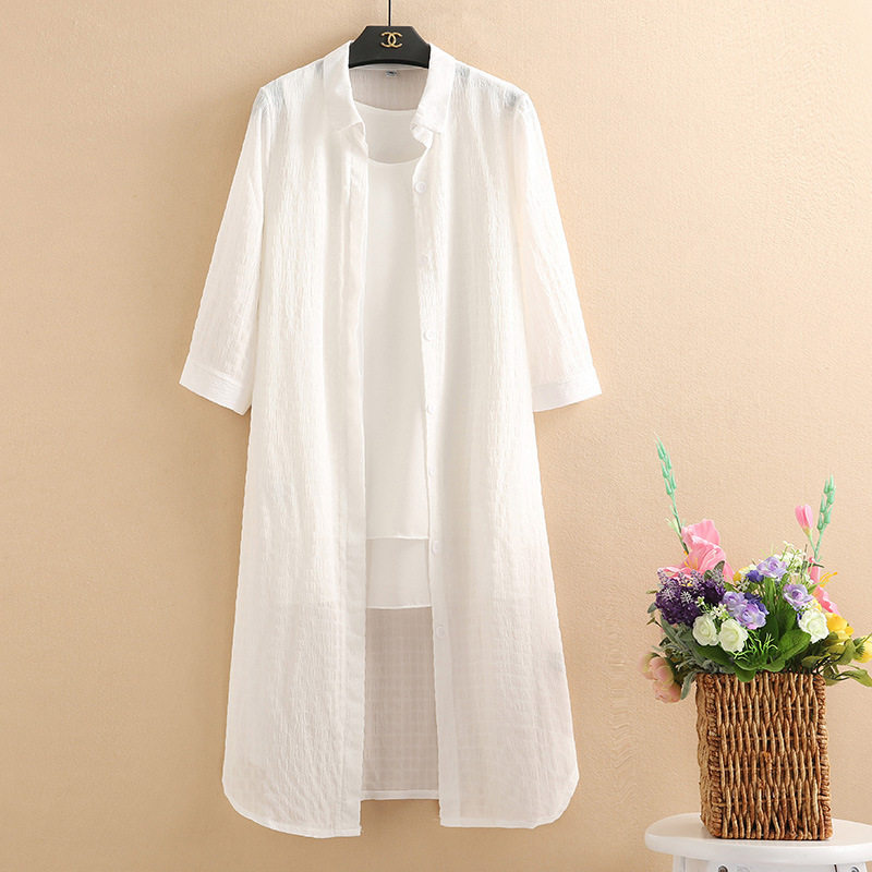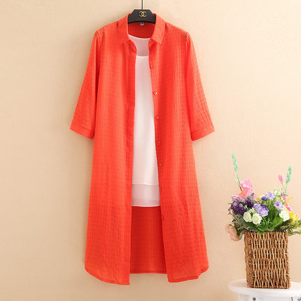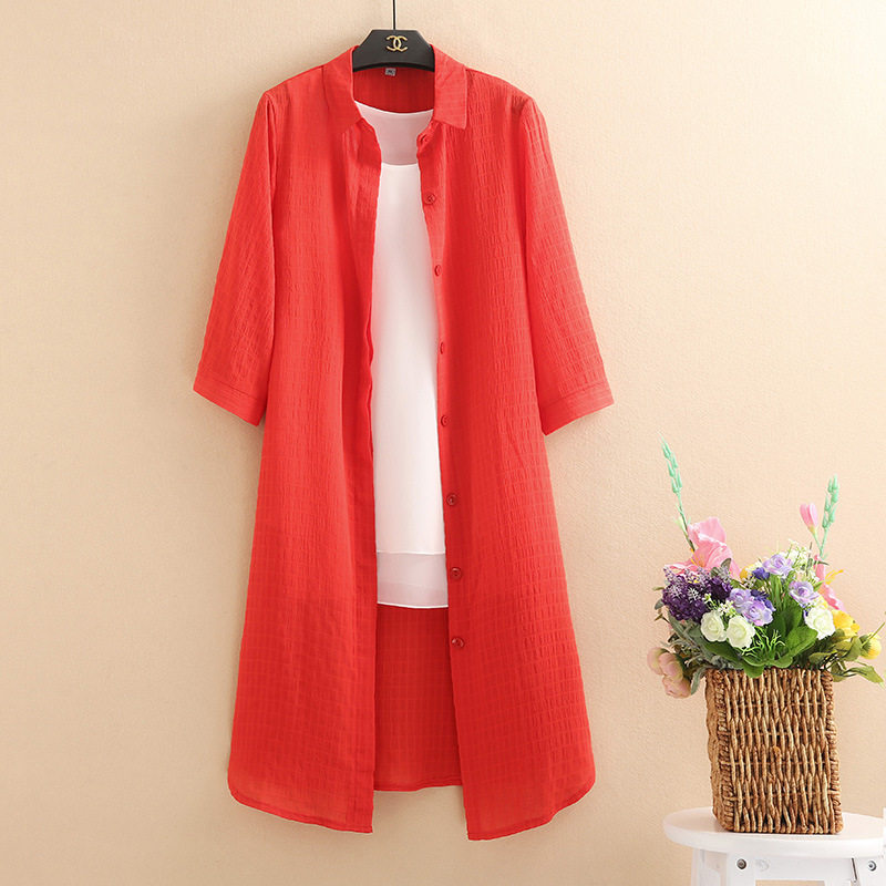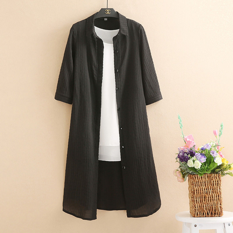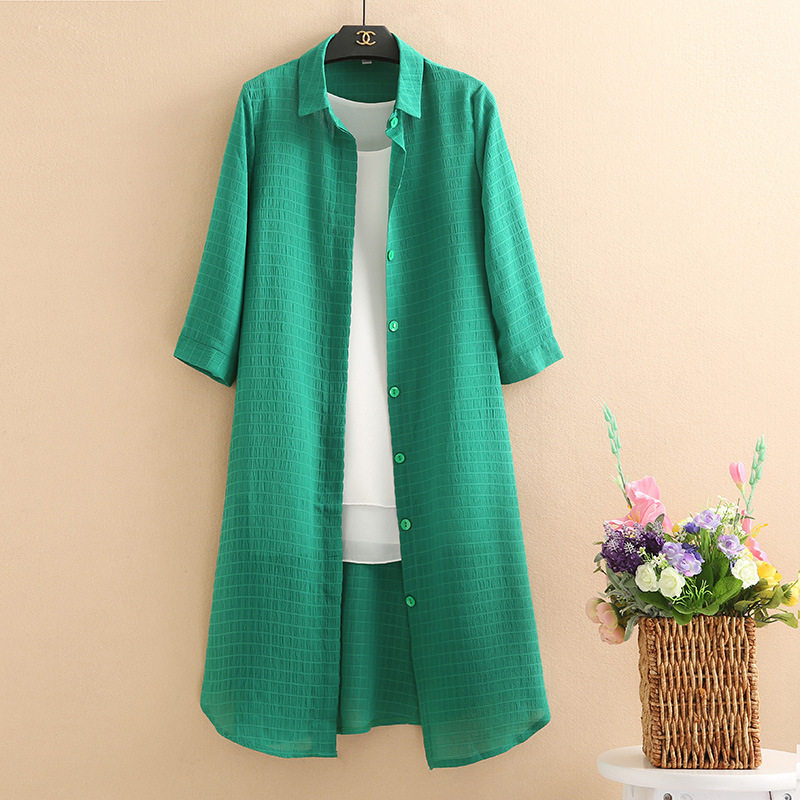 中老年春夏新款大码宽松中长款女士上衣妈妈装衬衫领外搭开衫外套