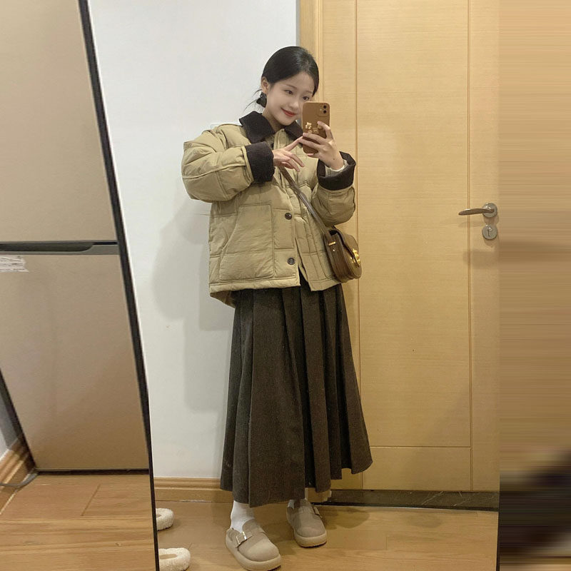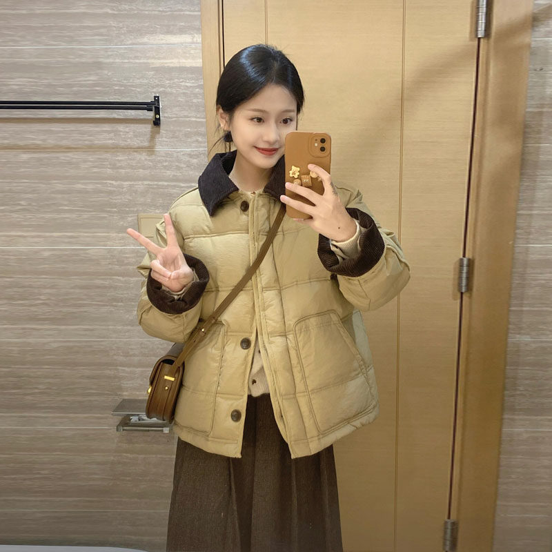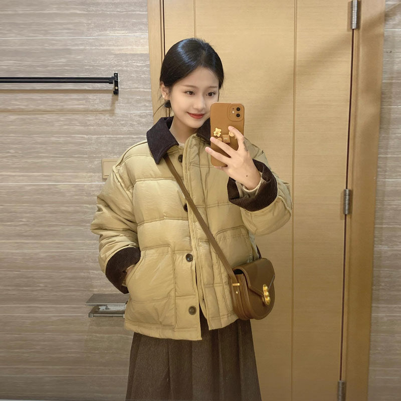 韩国时尚撞色短款羽绒棉衣棉服女冬2025年新款小个子加绒加厚外套