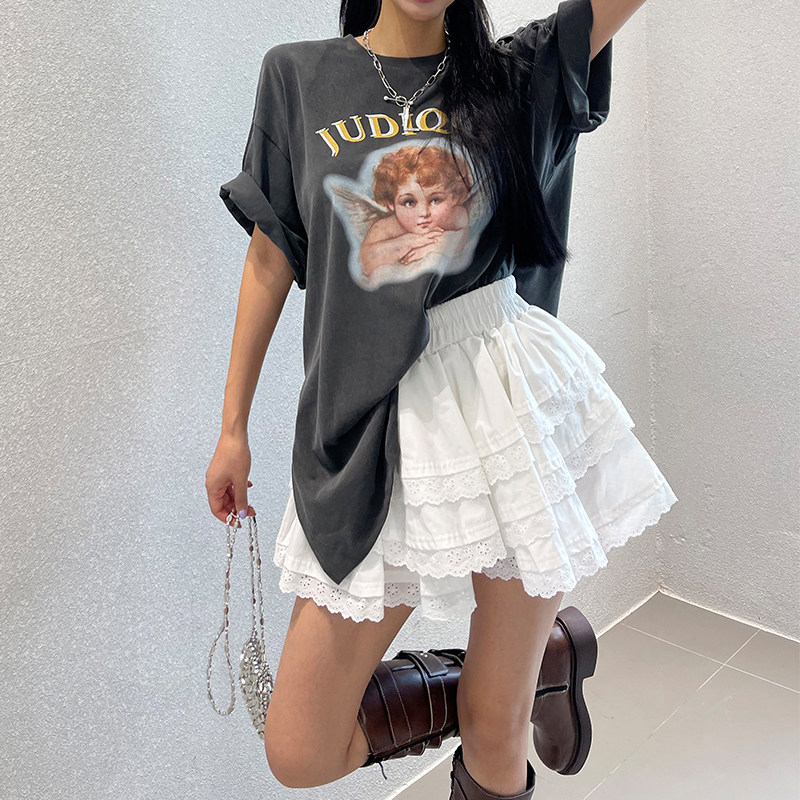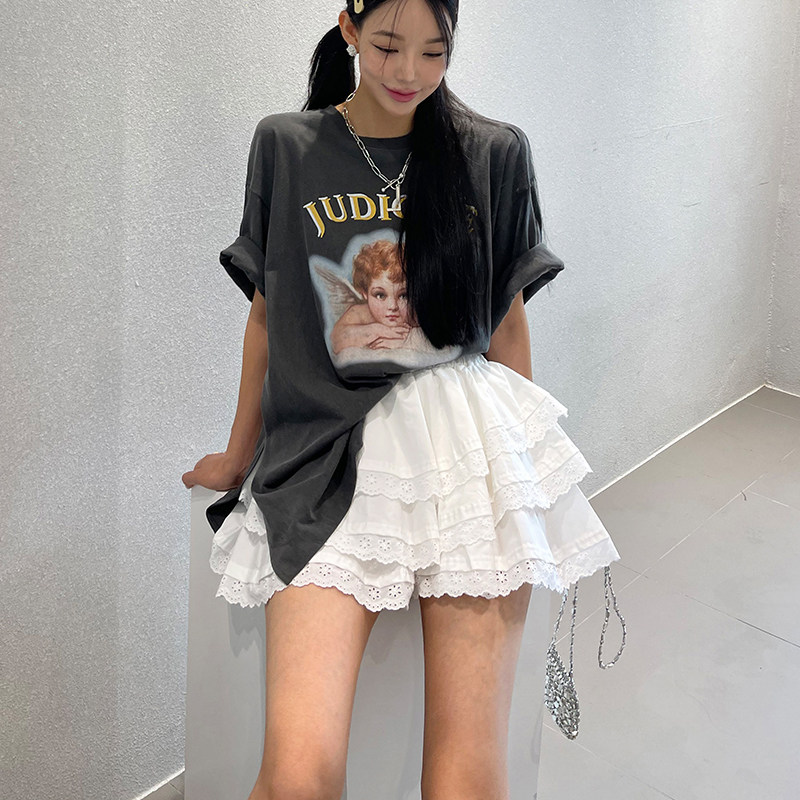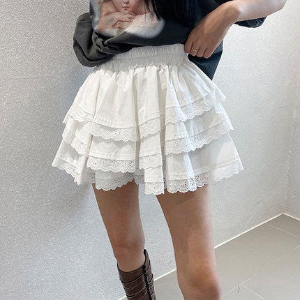 芭蕾风白色蕾丝半身裙女高腰蓬蓬裙甜酷辣花边短裤裙蛋糕a字短裙