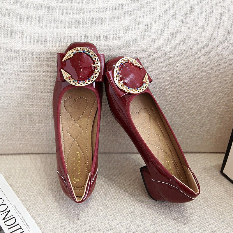 粗跟漆皮C扣四季气质百搭大码时尚女鞋夏新款方头中跟浅口单鞋女