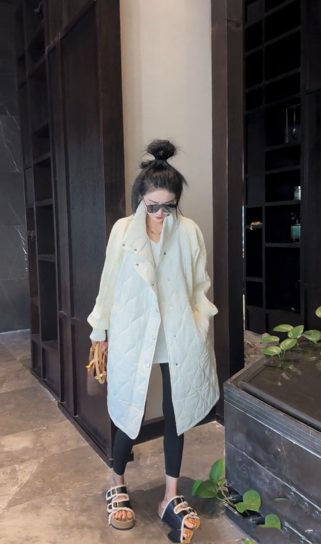 2025秋冬新款韩版宽松显瘦立领长袖棉服女百搭休闲上衣潮中长款潮
