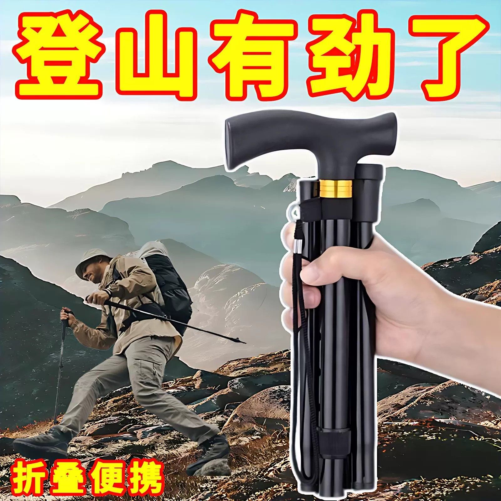 多功能户外可折叠登山杖老人拐杖超轻伸缩旅游伸缩爬山防滑手杖