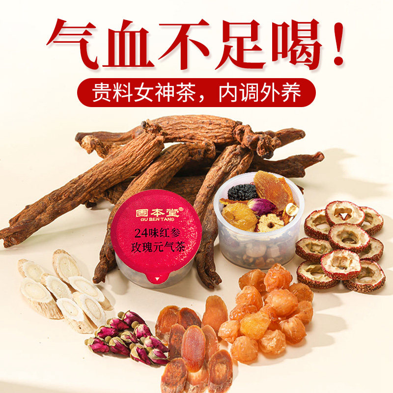 固本堂24味红参玫瑰元气茶补气血养生茶养生茶包适合女生喝的花茶
