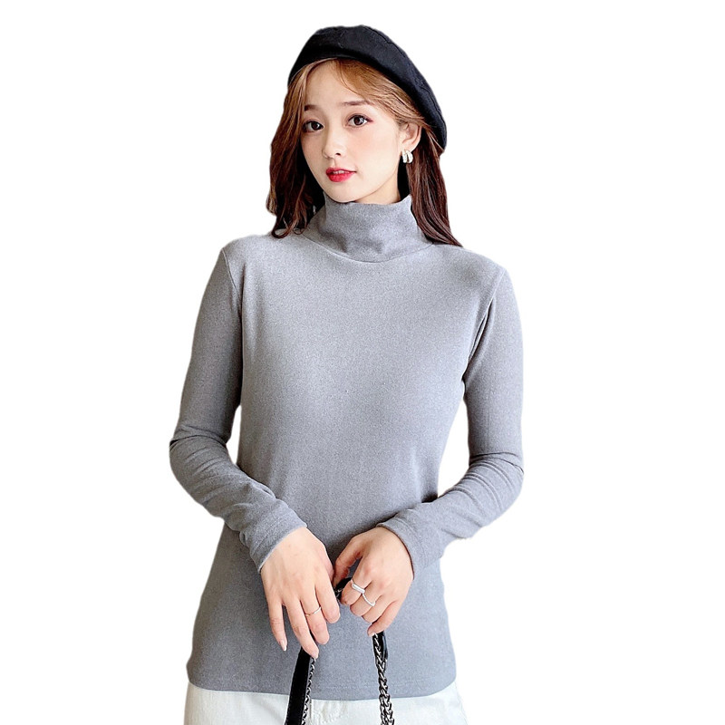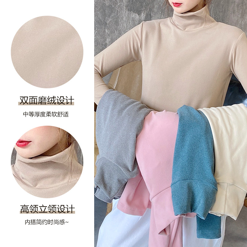 带胸垫保暖内衣女秋冬季自发热秋衣加绒无痕内搭带杯长袖高领上衣