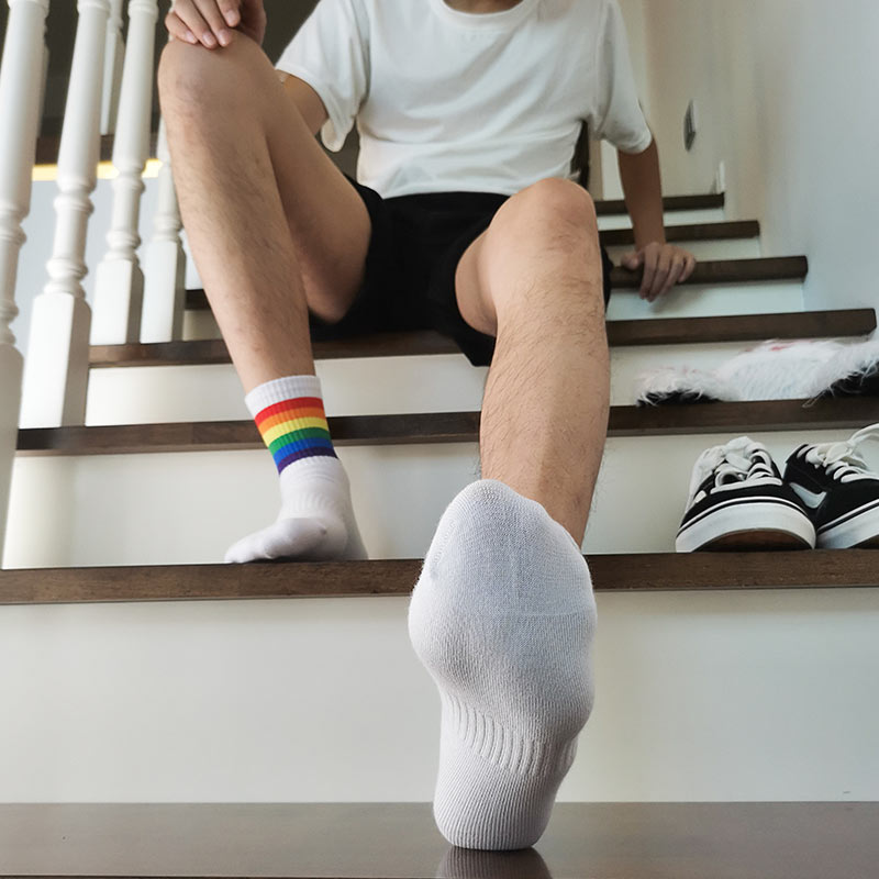4双彩虹袜子中筒纯棉四季白袜控短袜潮流条纹防臭中腰运动男袜