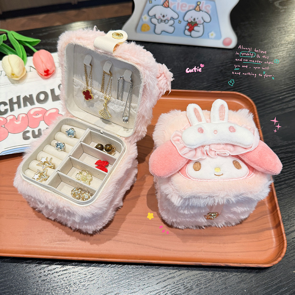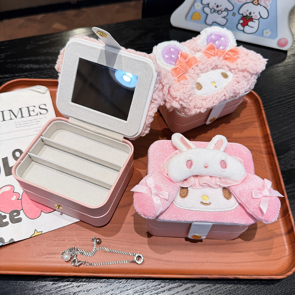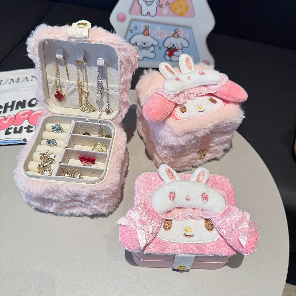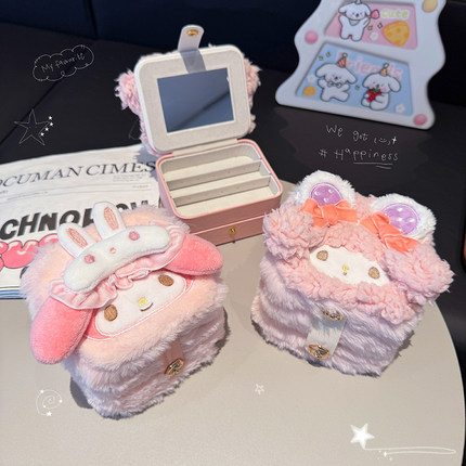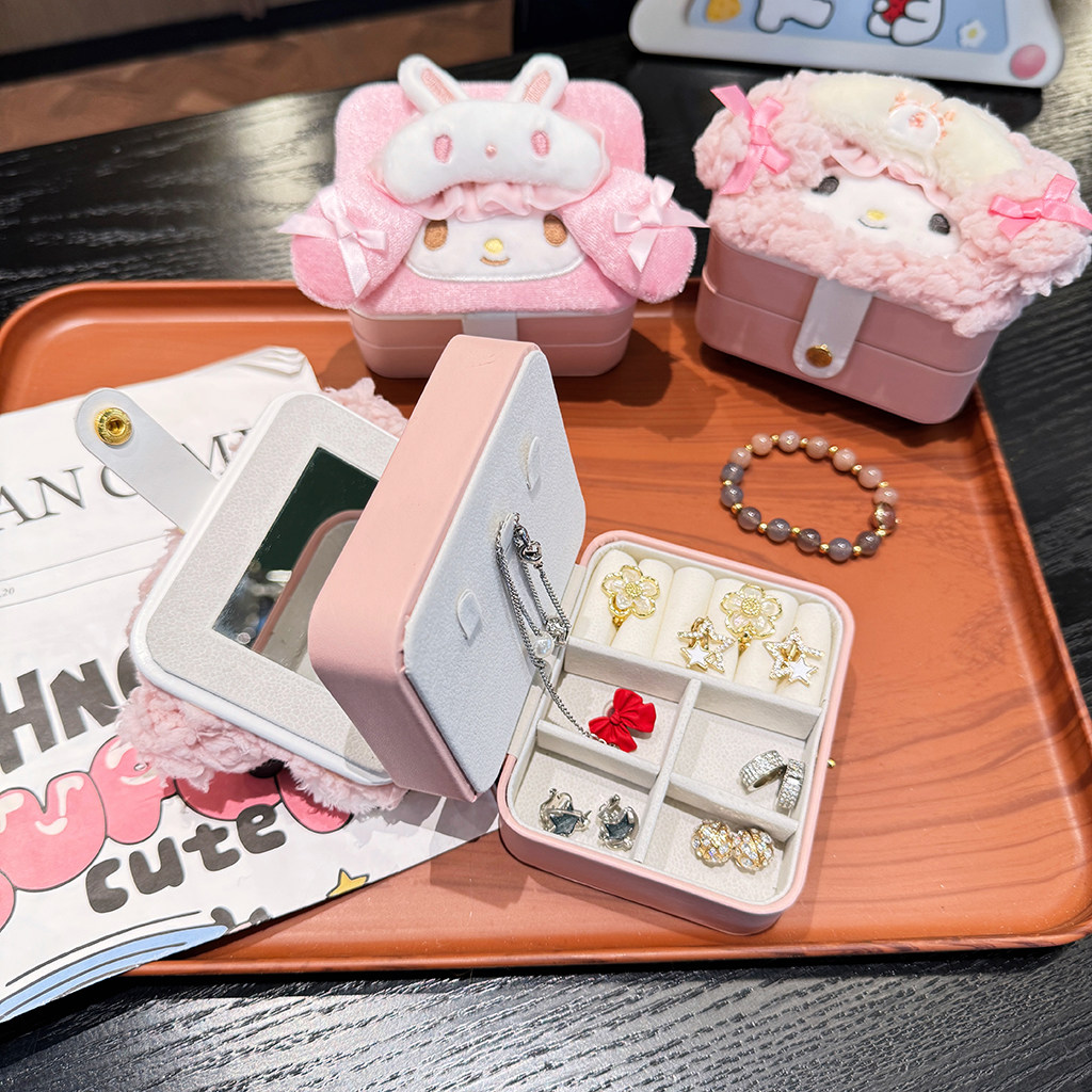 可爱卡通粉羊首饰盒便携大容量旅行耳环戒指项链手饰品收纳盒小型