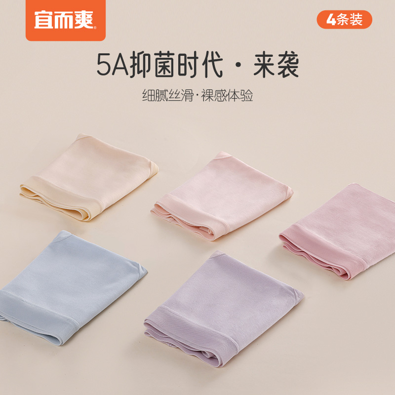 宜而爽莫代尔高弹夏季超薄透气内裤5A蚕丝抑菌裆全包臀三角裤4条