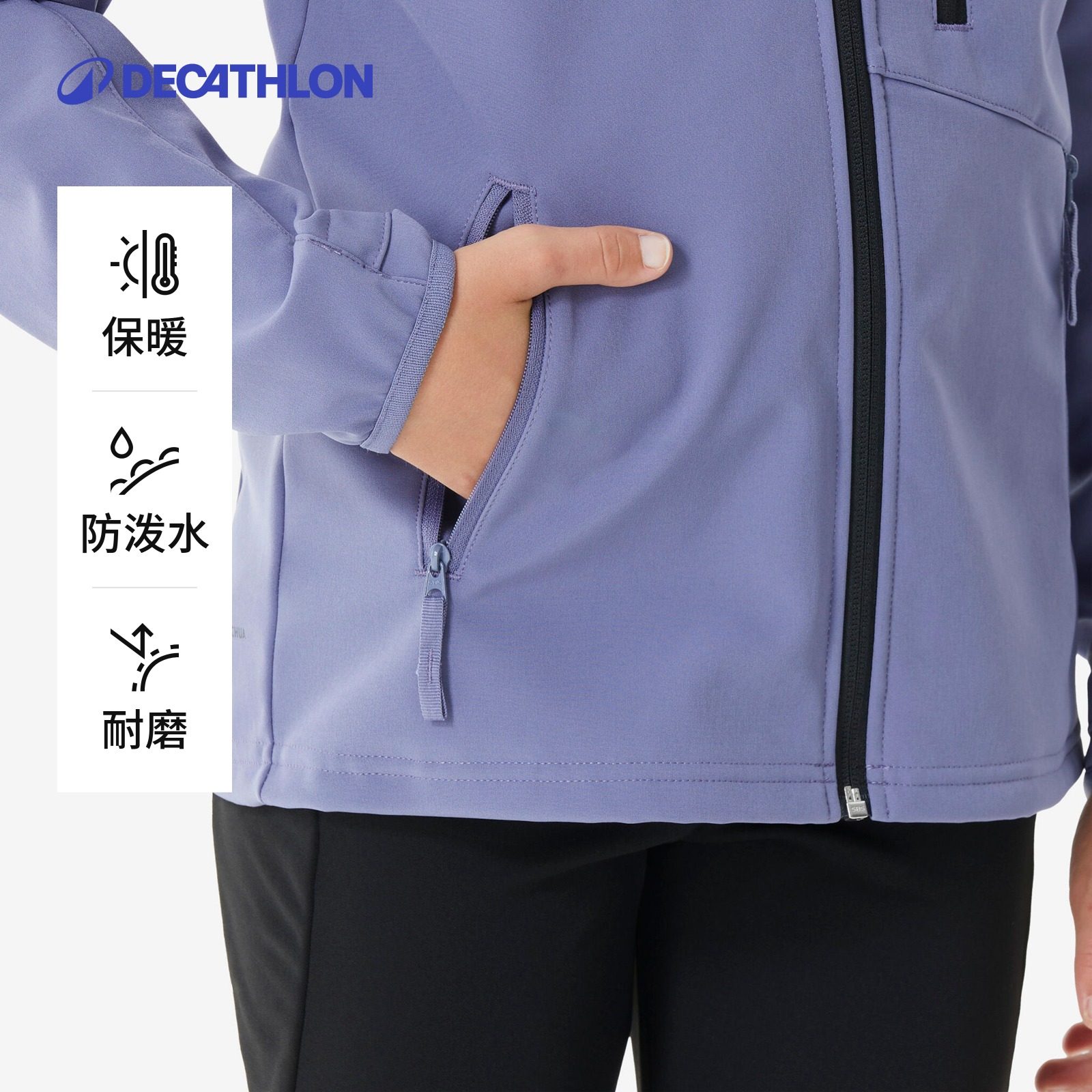 迪卡侬旗舰店儿童软壳衣男童女童户外加绒保暖秋夹克运动外套KIDC