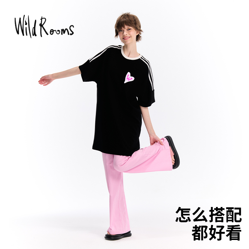 wildrooms2025新款女士宽松百搭短袖上衣独特创意小众中长款t恤裙