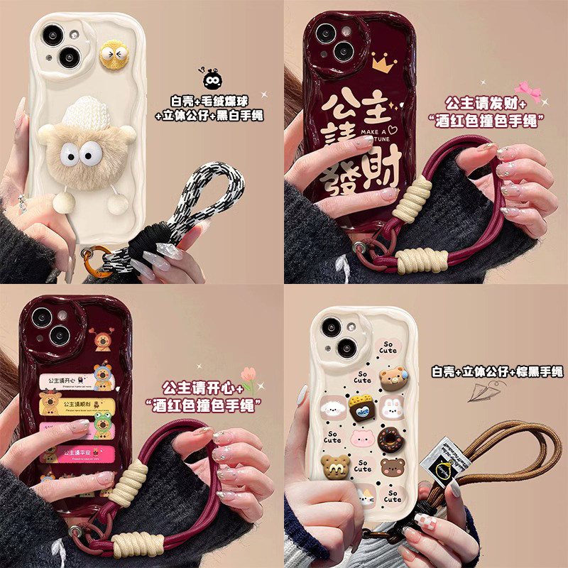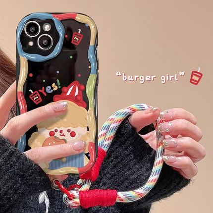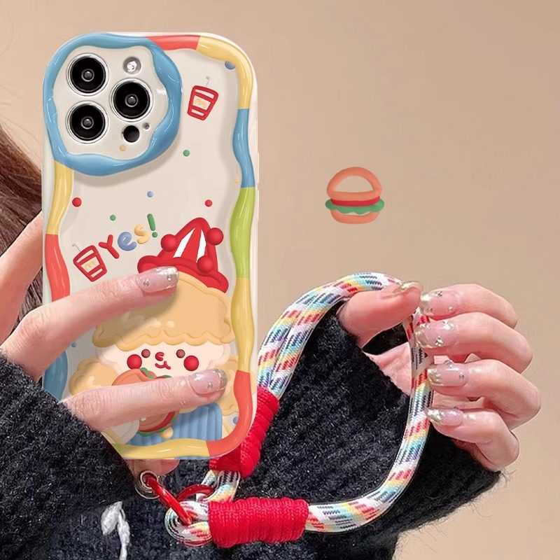适用苹果17promax手机壳16新女款iPhone15/13奶油纹11/12mini防摔xs/xr可爱8/7plus小丑手腕挂绳se2保护套6s